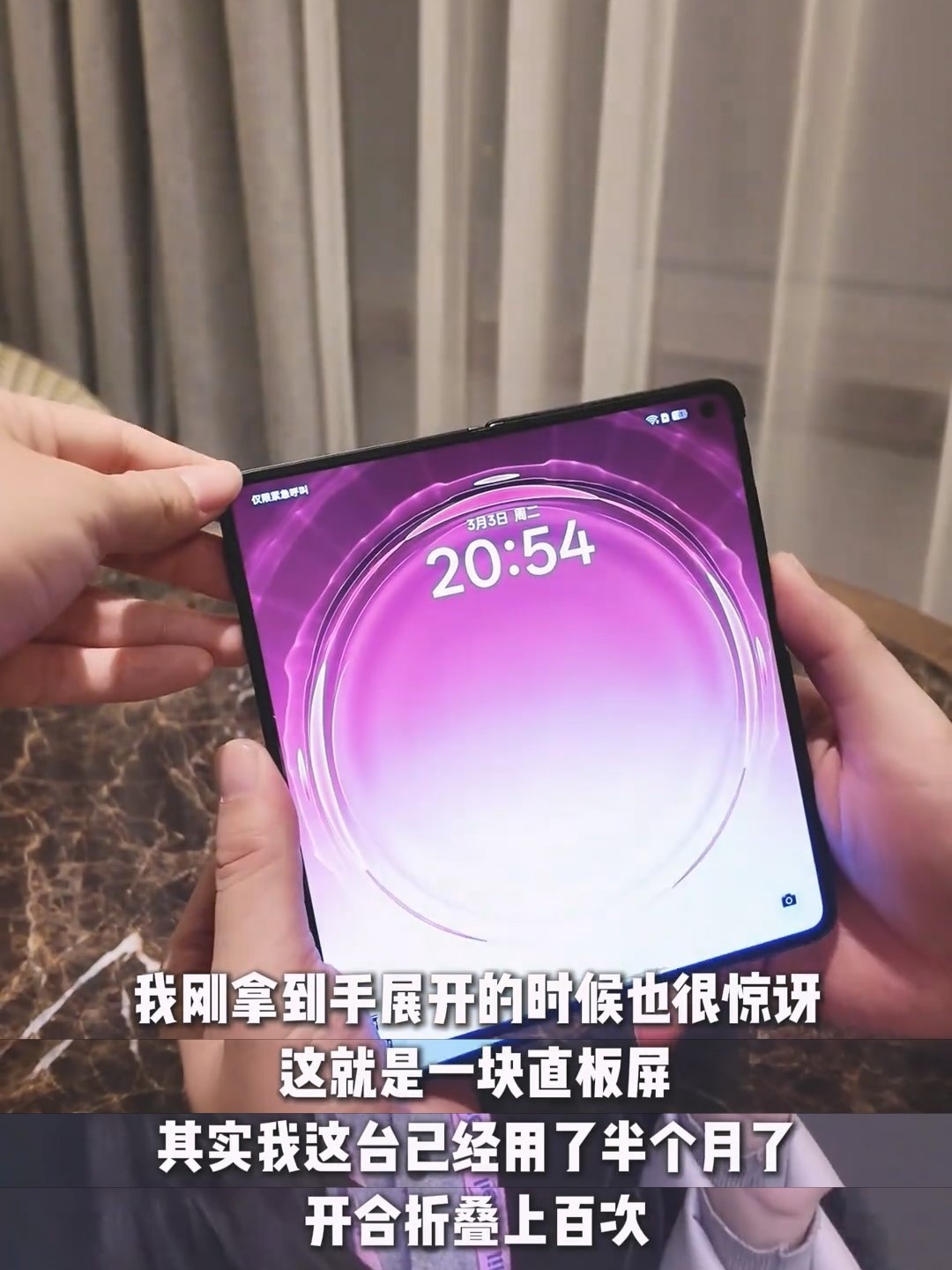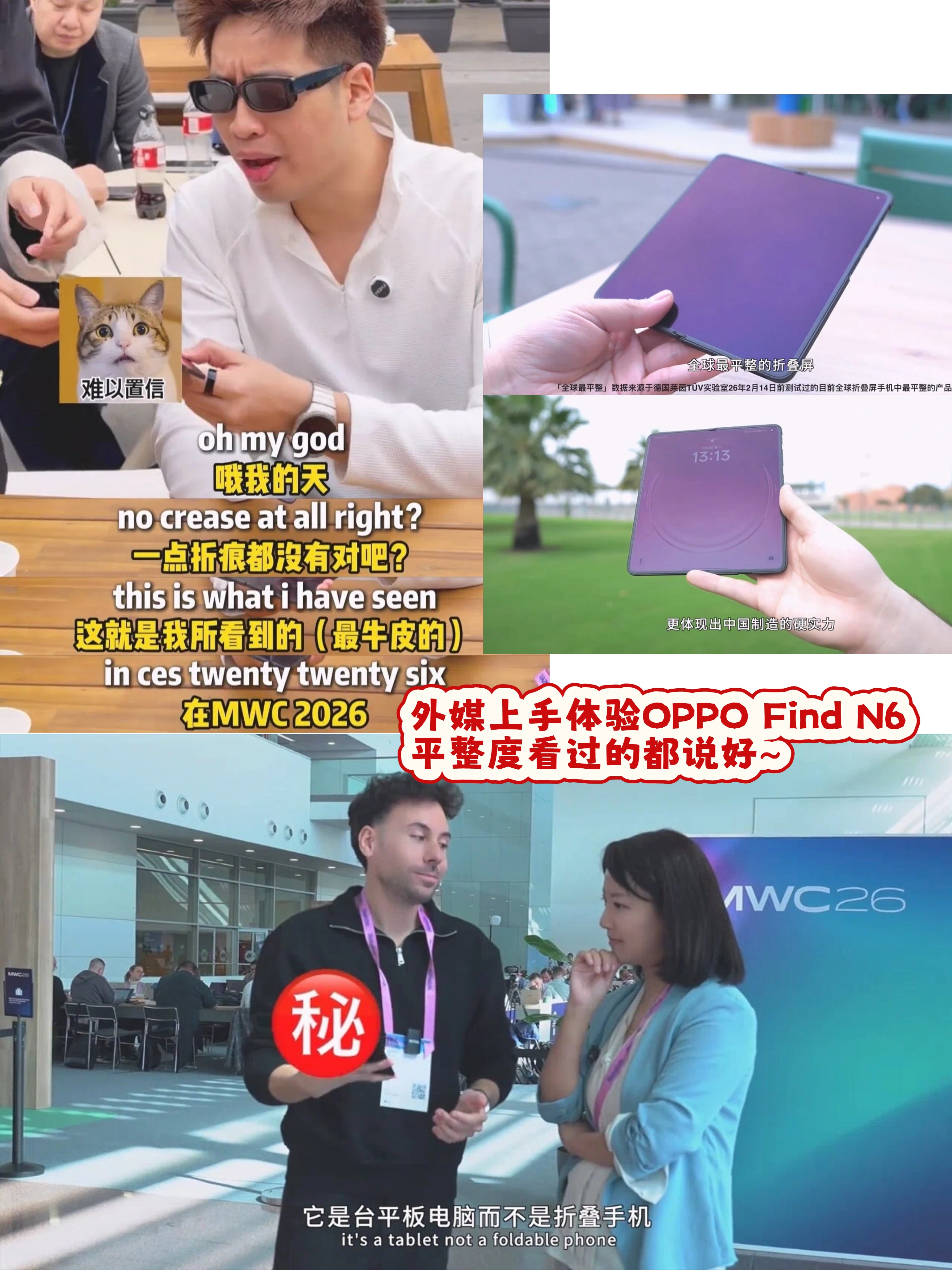 还有个小彩蛋,「玩机少女」给老外体验的这台OPPO Find N6还是已经用了半个月,折过上百次的,看来不仅是开箱超平整,而且久用之后也依旧能平整如新,今年想换折叠屏的确定不蹲一蹲发布会?