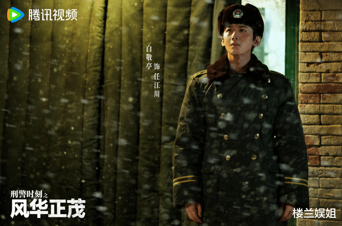 剧照里的他饰演刑警任江川,短发黝黑利落,身着洗得发白的90年代警服,站在没膝的大雪中凝望远方。