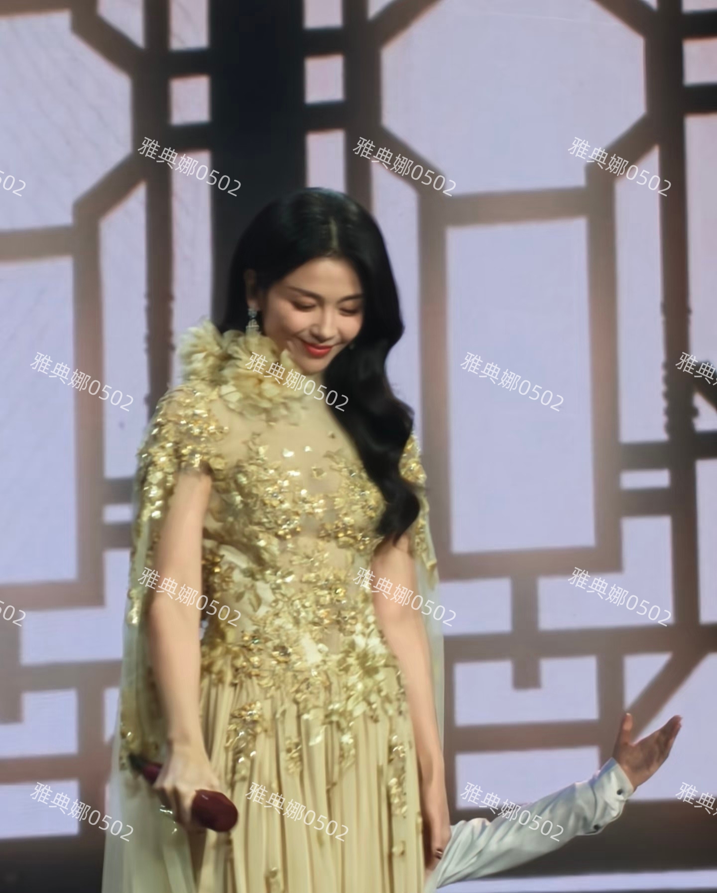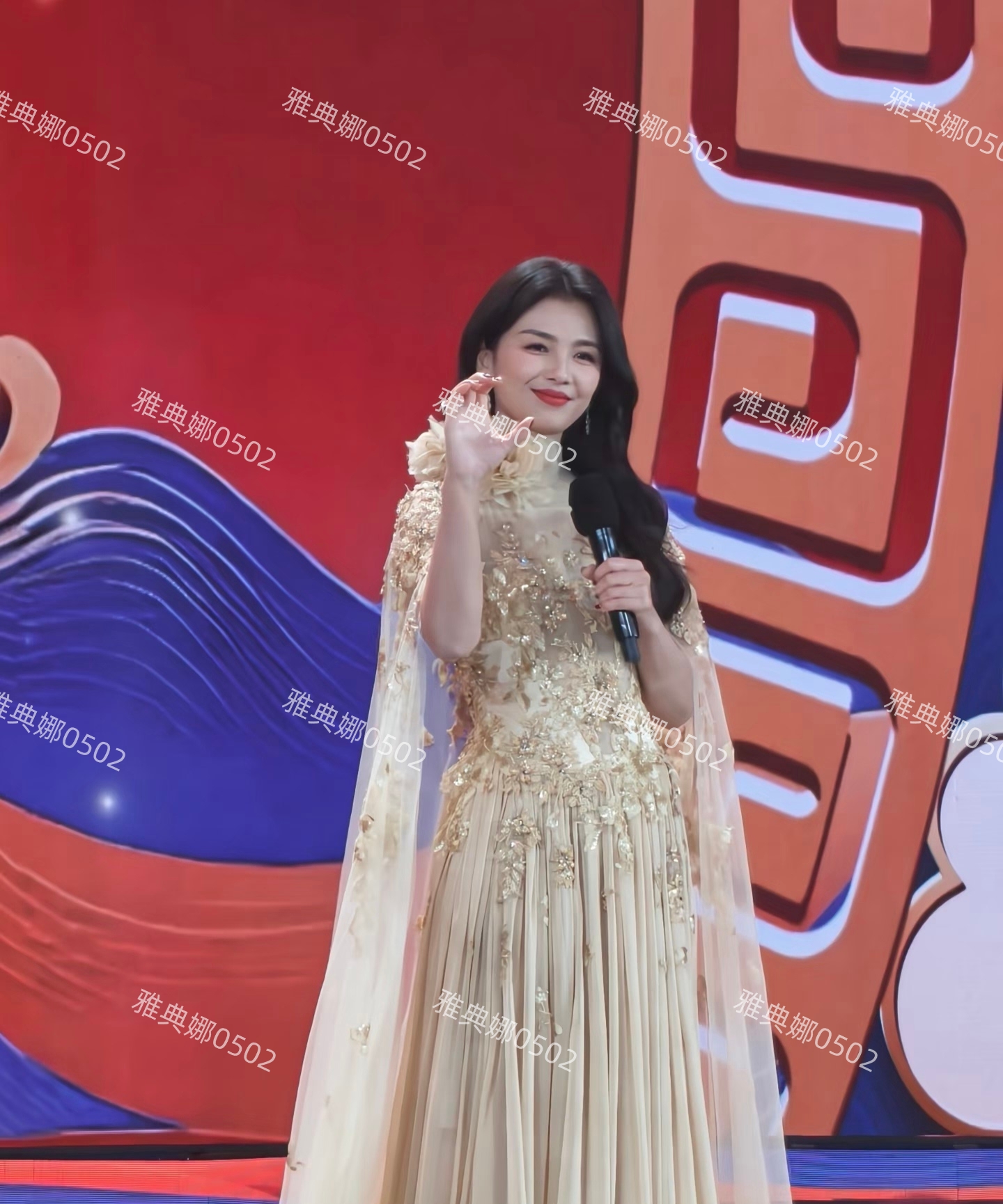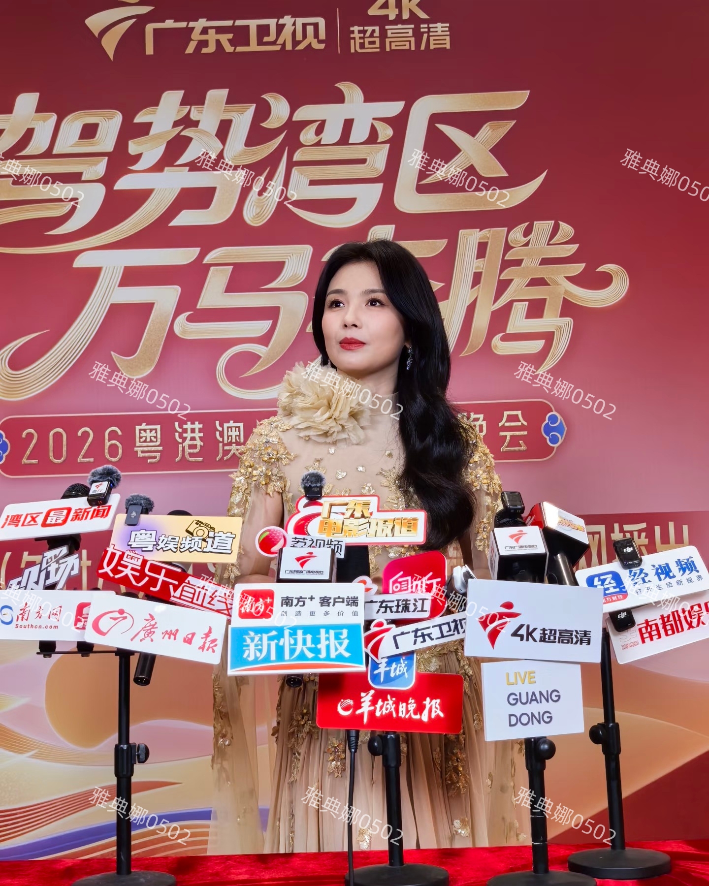 刘涛近日作为表演嘉宾参与了《2026粤港澳湾区春节晚会》的录制,穿了一件金色花朵披风礼服的她,梳着温柔的大波浪,形象端庄优雅落落大方。