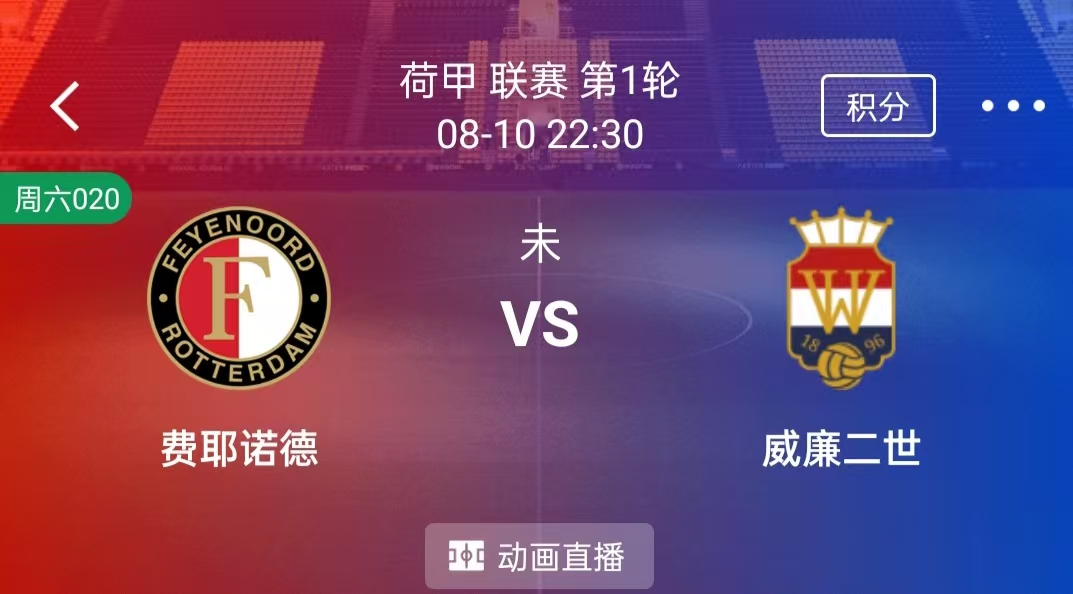 周六 020 荷甲:费耶诺德VS威廉二世