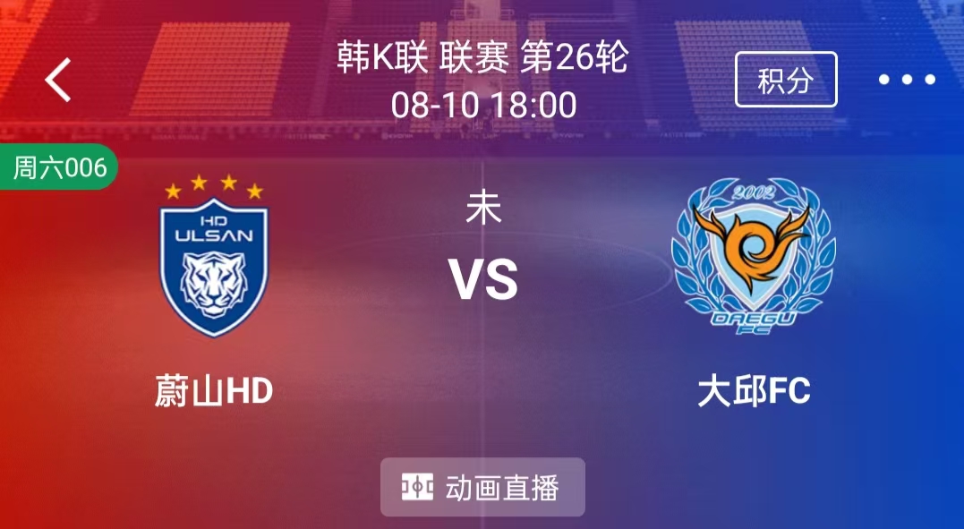 赛事分析:大邱FC近10场2胜4平4负 进10球失11球