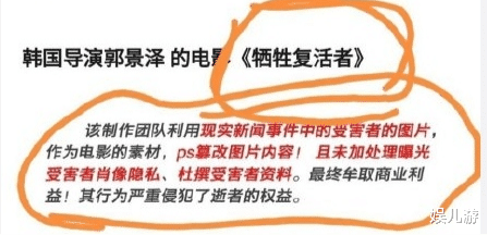 这样的行为不仅仅是对尸体的侮辱,也是对死者家属的不尊重,对于死者家属这些图片原本就是非常沉痛的回忆,如今却被韩国导演拿到大屏幕上供人观看,把这些血淋淋的画面当做是赚钱的工具,实在是没有人性可言。
