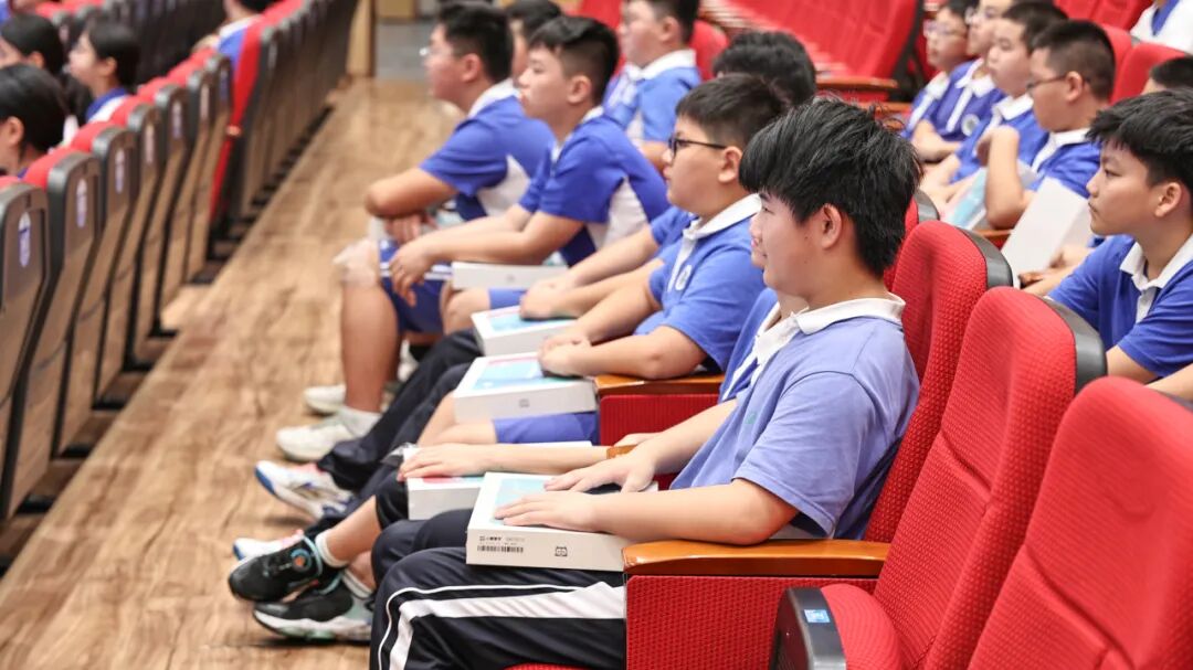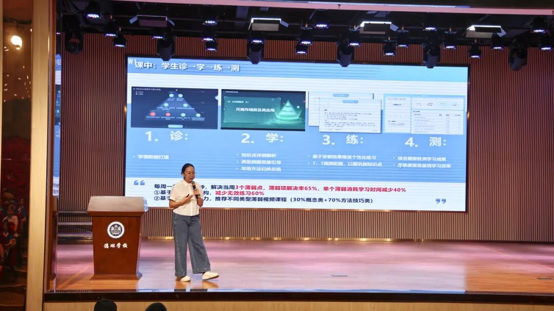 七年级的新生们端坐席间,手里捧着崭新的学习平板,目光齐齐追着讲师的身影 ,细细聆听讲师拆解 AI 教学 “诊 — 学 — 练 — 测”的 脉络。