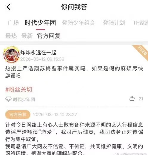 面对愈演愈烈的传闻,经纪公司时代峰峻迅速发布声明,明确否认“恋爱”传闻,斥之为恶意造谣,并宣布已启动法律取证程序,将严肃追责。然而,声明仅针对“恋爱”一事辟谣,却未正面回应“是否去过苏梅岛”的核心疑问,这种“半遮面”的回应方式反而激起了粉丝更强烈的焦虑,被指“避重就轻”,未能平息对隐私泄露源头的追问。
