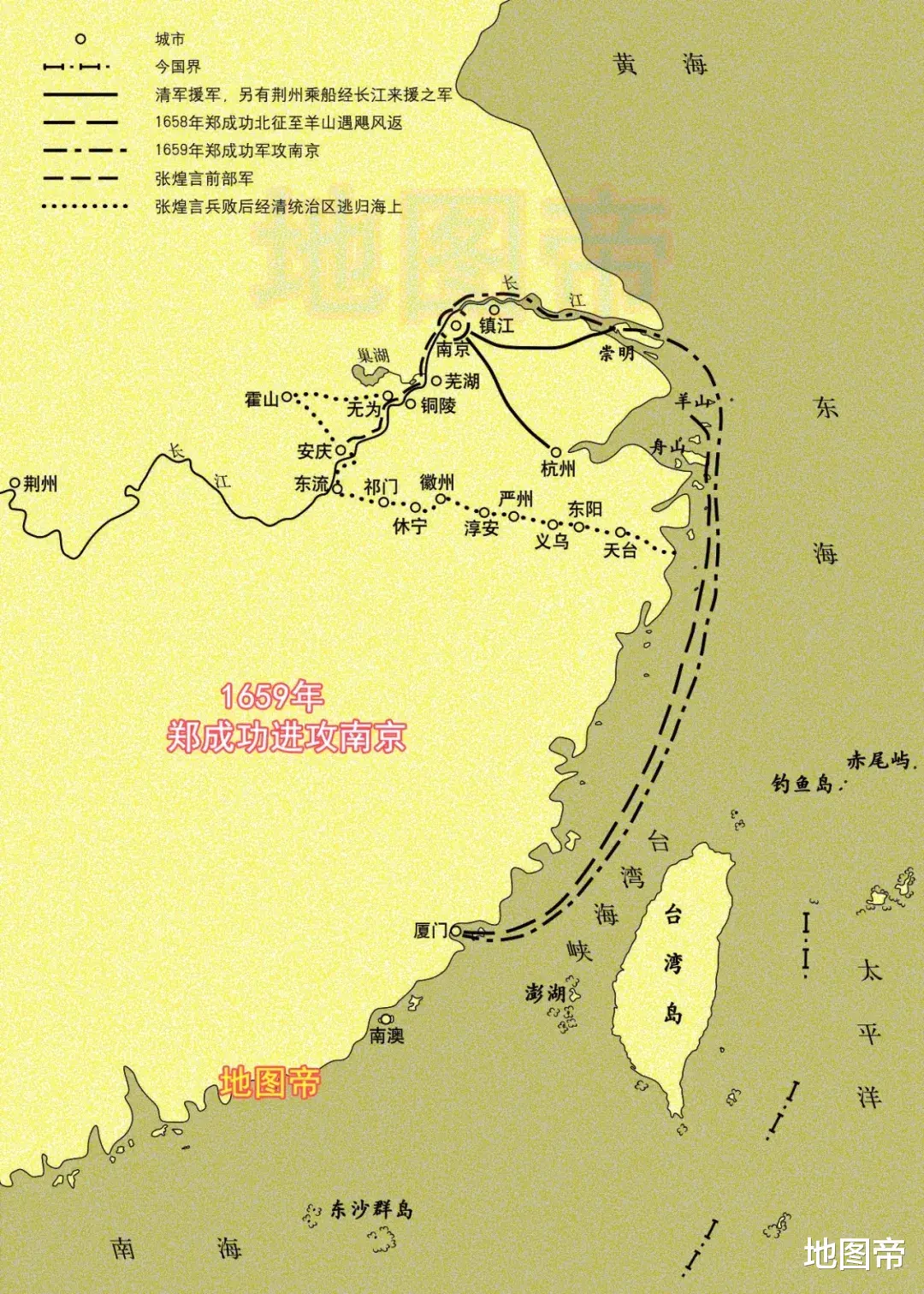1659年(清世祖顺治十六年、南明昭宗永历十三年)五月,郑成功再率十万大军北伐,会同张煌言部进入长江,势如破竹,接连取得丁海关、瓜州、镇江等战役的胜利,张煌言部亦取芜湖一带十余府县,一时江南震动。不过郑成功攻南京、崇明皆不克,失去潘庚锺和甘辉等得力将领,只得退回厦门。