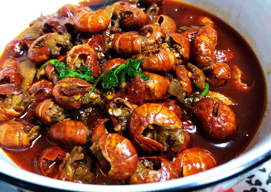 来源:网络做法材料:超市冻小龙虾尾(比较干净,整只的不知道哪里卖,而且还得除肠,脏)葱姜蒜(切大块的就行,多些)植物油(一点点)干辣椒(红色的整颗)、花椒(粒状)大红袍火锅底料(麻辣的,这个最关键)糖、啤酒、酱油、醋(一点点)烹饪步骤:龙虾尾解冻,水控干锅里放油烧热,放入葱姜蒜及龙虾尾爆炒,基本上把水份炒干,龙虾稍红的时候倒入酱油、糖,微炒上色,倒入小龙虾调料(我一般倒半包).稍翻炒就可以倒入啤酒(罐装半听)、倒入水(刚好超过龙虾一点就好)、根据口味放入干辣椒喝花椒(也可不放,大红袍本来很辣,不过放些好看) 将上述一锅东西倒入沙锅。闷7、8分钟入味,起锅时加点点醋。【爆炒龙虾尾】