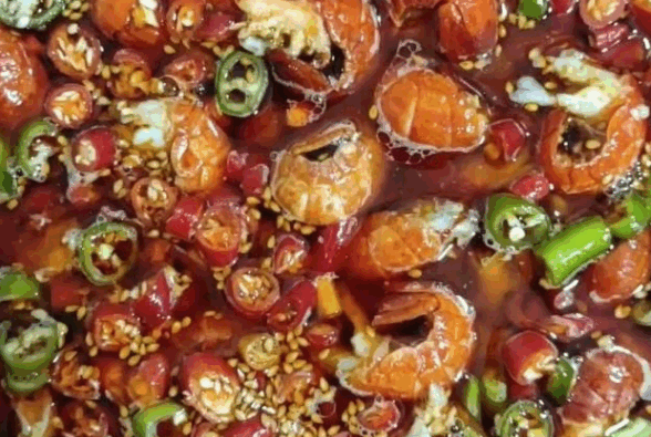 来源:隔壁炊事班长(百家号)一:原材料选购与酱料配制。1、龙虾尾1000克(一般大型菜市场或者水产市场有售,要选择颗粒饱满,无异味,无空壳的虾尾)。2、重庆火锅底料50克、海鲜酱25克、排骨酱25克、柱候酱15克、辣妹子酱100克、八角粉5克、花椒粉10克、辣椒粉20克、十三香5克、食用油500克。3、花椒5克,干辣椒10克、啤酒100毫升、醪糟50克、味精5克、鸡精5克,大蒜20克、小葱10克、土豆或者红薯250克、黄瓜100克、熟白芝麻适量。冰冻龙虾尾二:龙虾尾的处理与酱料熬制。1、把龙虾尾解冻清洗,尾部用力折一下带出虾肠,用剪刀沿着背部中间剪一下开一道小缝,控干水分备用。2、用一不锈钢盆子,把重庆火锅底料、海鲜酱、排骨酱、柱候酱、辣妹子酱、八角粉、花椒粉、辣椒粉、十三香全部混合在一起搅拌均匀。炒锅一定炼好不粘锅,倒入食用油烧至五成油温,把混合酱料倒入,这个时候要把火调到最小,用勺子沿锅底顺时针不停旋转搅动,直到酱料均匀混合在一起,食用油成为深红色,出现很浓的香味,关火冷却后盛放在器皿内备用(这个放置冰箱密封冷藏酱料可以常年使用)。秘制香辣酱三:香辣龙虾尾的成品制作。1、干锅香辣龙虾尾的制作。把土豆红薯切成5毫米见方的长条状,油温烧至六成下入食材,小火慢炸至表面金黄捞出控油。把黄瓜切成5毫米见方的条状与土豆红薯铺放在不锈钢盆底备用。炒锅烧热加入食用油50克,放入花椒,辣椒段,姜片,爆香,放入50克秘制香辣酱翻炒至红油,放入龙虾尾翻炒几下,倒入啤酒,醪糟汁翻炒几下,盖好锅盖中火焖烧三分钟开盖加入大葱段,大蒜,翻炒1分钟左右,加入适量味精鸡精即可出锅倒入不锈钢盆放在酒精炉上面,食用到一半时候可以加入清汤或者高汤涮食其它食材。干锅香辣龙虾尾2、香辣炒龙虾尾。炒锅烧热加入适量食用油,姜片,葱段,花椒,辣椒段爆香,加入10克秘制香辣酱炒香,加入龙虾尾翻炒几下,烹入适量啤酒焖2分钟。最后加入大蒜片,味精,也可同时加入一些芹菜段作为辅料翻炒收汁即可出锅装盘。【孜然龙虾尾】