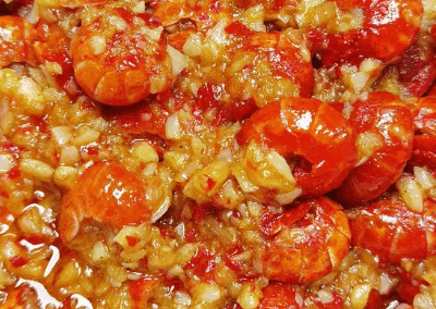 来源:辉辉楚菜~杨光(抖音)处理好的虾尾多清洗几遍,加姜、葱、料酒、盐、淀 粉抓拌均匀,腌制两分钟备用。油温四成,下虾尾炸个两三分钟,外皮焦脆,捞出备用。锅中留底油,把蒜蓉炒香,给一勺烧烤料稍微煸炒一下下, 加入虾尾,撒上葱花、芝麻,翻炒均匀。一道香辣孜然味的小龙虾尾就做好了。【蒜烧龙虾尾】
