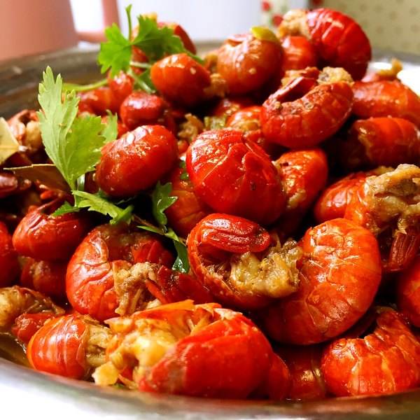 来源:可乐乐777(下厨房)用料: 龙虾尾 适量、 洋葱 一个、 大蒜头 一个、 韩国辣酱 一勺、 老干妈豆豉酱 一勺、 鱼泉麻辣鲜 一勺、 腐乳汁 适量、 糖 适量、 葱姜 适量、 玉米油 适量、 白酒 少许、 水 少许、 香菜 少许步骤 1 龙虾尾清洗干净沥水 br>     步骤 2 锅里倒入色拉油(稍微多点)煸透龙虾(大约5分钟) br>     步骤 3 煸好的龙虾装盘,锅里的油留下煸炒韩国辣酱、老干妈豆豉酱、麻辣鲜 br>     步骤 4 倒入洋葱、蒜头、葱姜继续煸炒 br>     步骤 5 倒入龙虾煸炒,喷少许白酒盖上锅盖焖一分钟,加入适量的腐乳汁和糖继续用中大火不停的翻炒片刻 br>     步骤 6 出锅装盘撒上香菜末即可【家常龙虾尾】