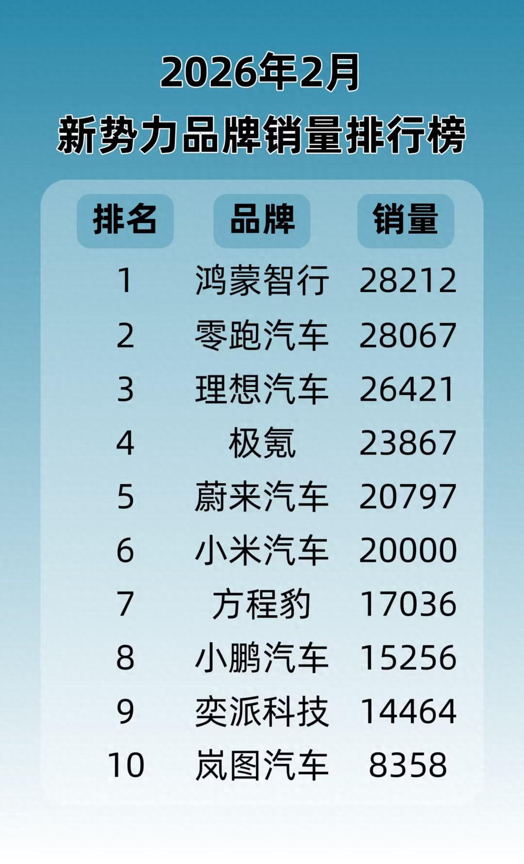 理想还是稳,极氪作为新品牌也做得不错。小鹏这次掉到第八,有点没想到。希望后面都能发展更好吧。