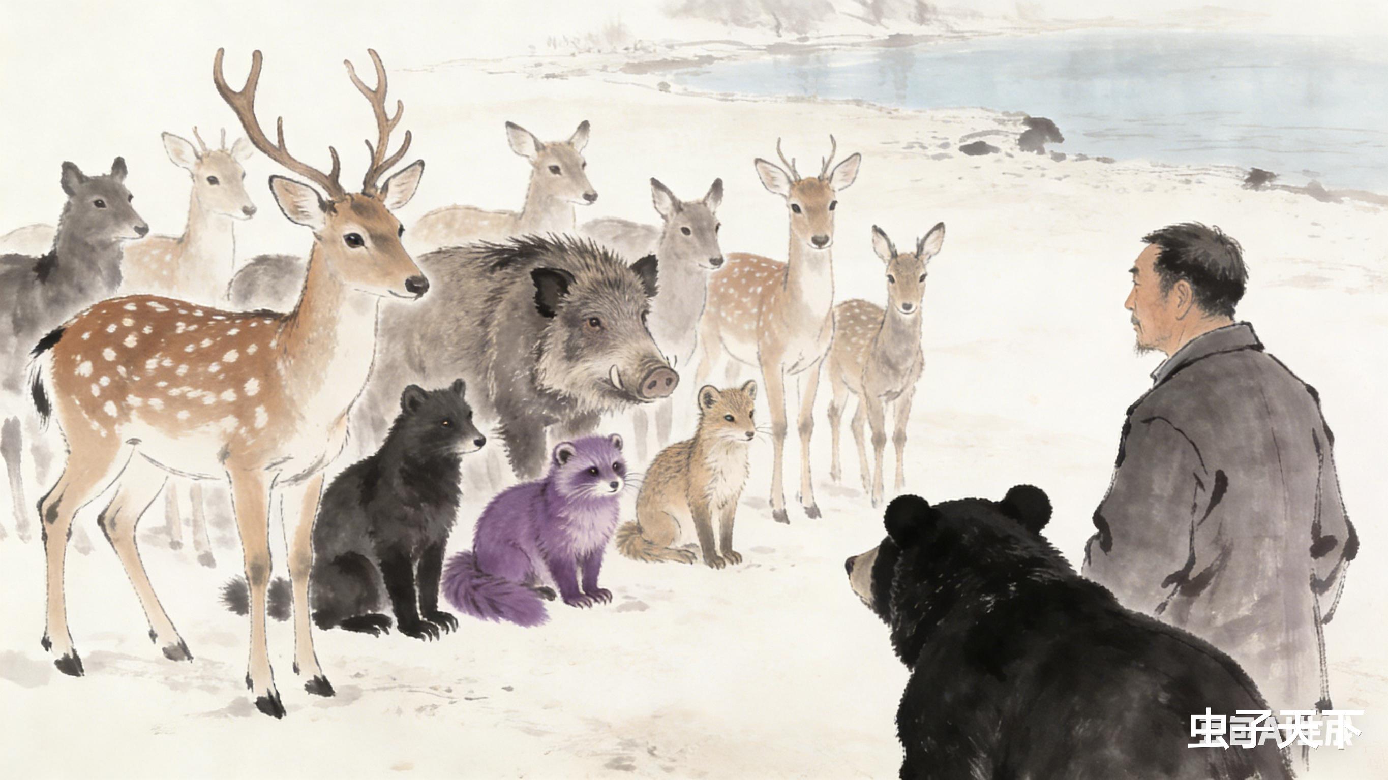 梅花鹿、野猪、紫貂、狍子,甚至还有两只平时极少露面的黑熊,全都安安静静站在那里,像是在等待什么。