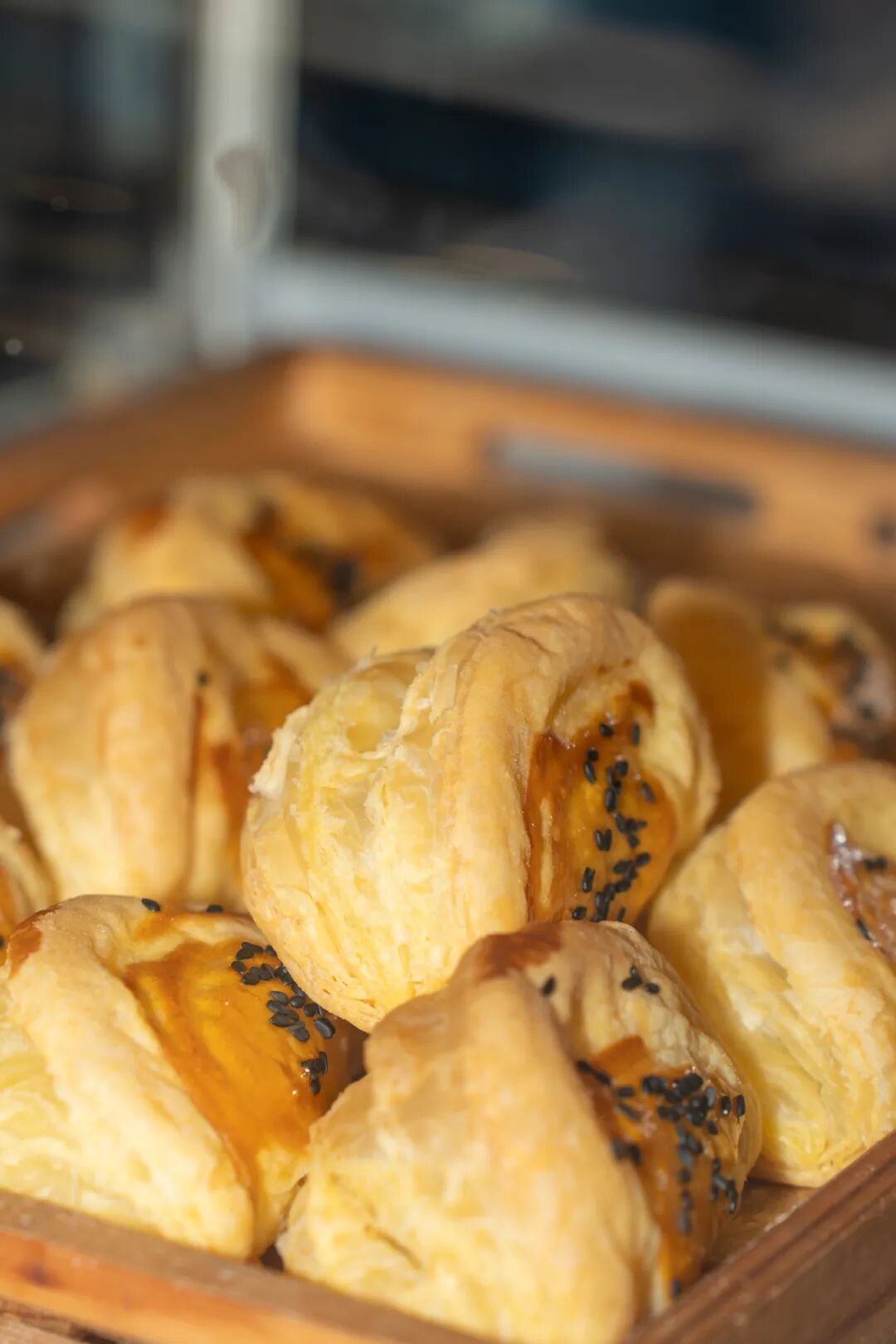 小点心是每次逛小吃街都少不了的。这家泡芙可以说没有对手了,口味有很多种,原味、抹茶、椰子、香草......还有榴莲酥,奶呼呼的超可爱。