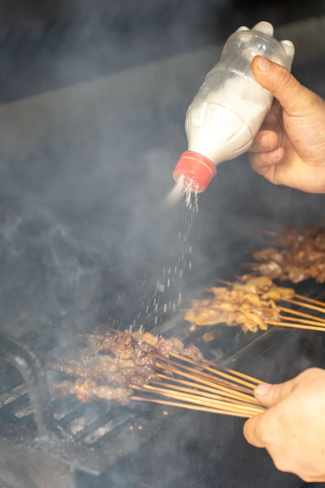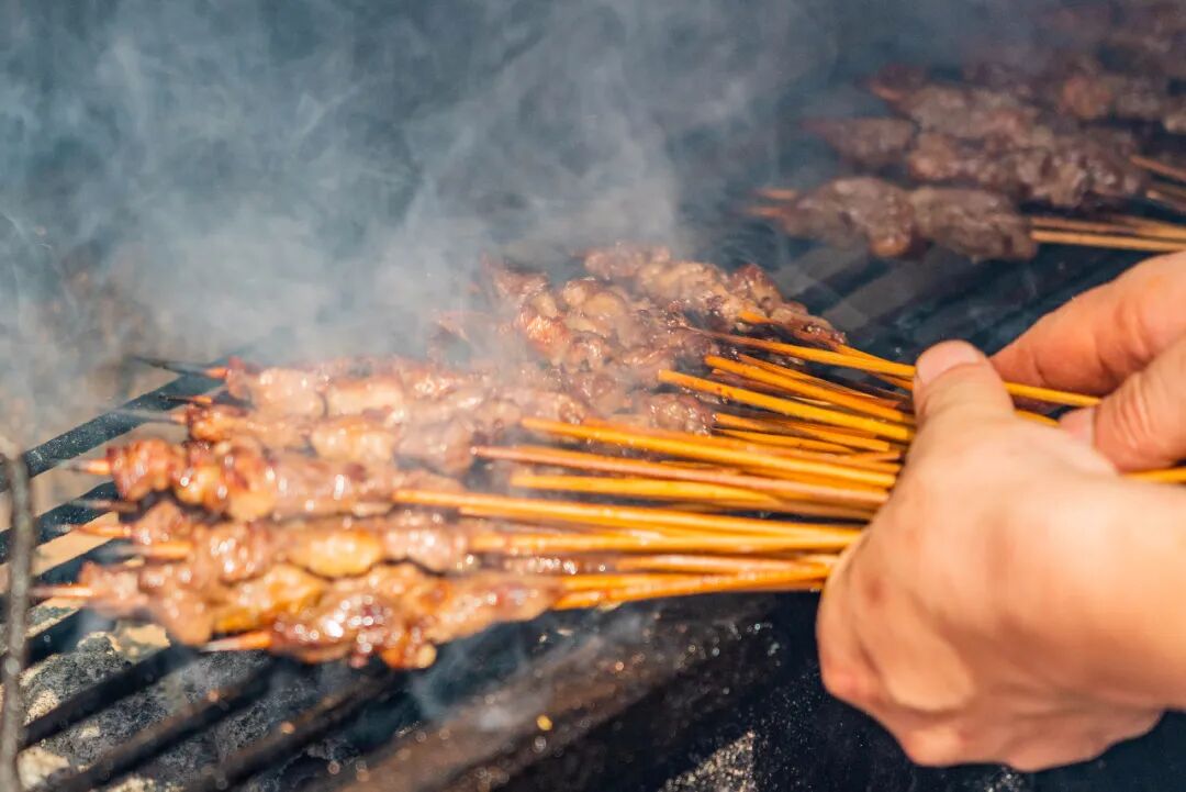 被炭火烤的滋滋冒油的牛肉串,表面慢慢变得焦黄,别提多诱人!浓浓的肉香和孜然香味扑面而来,全都是真材实料的扎实感。