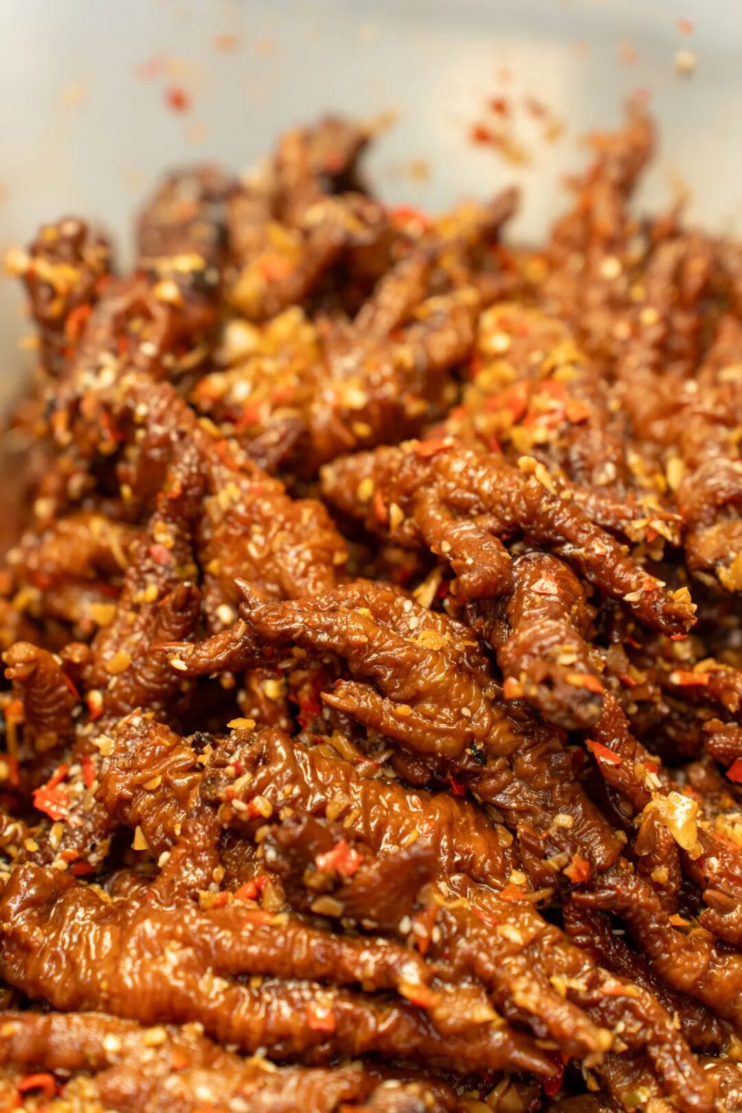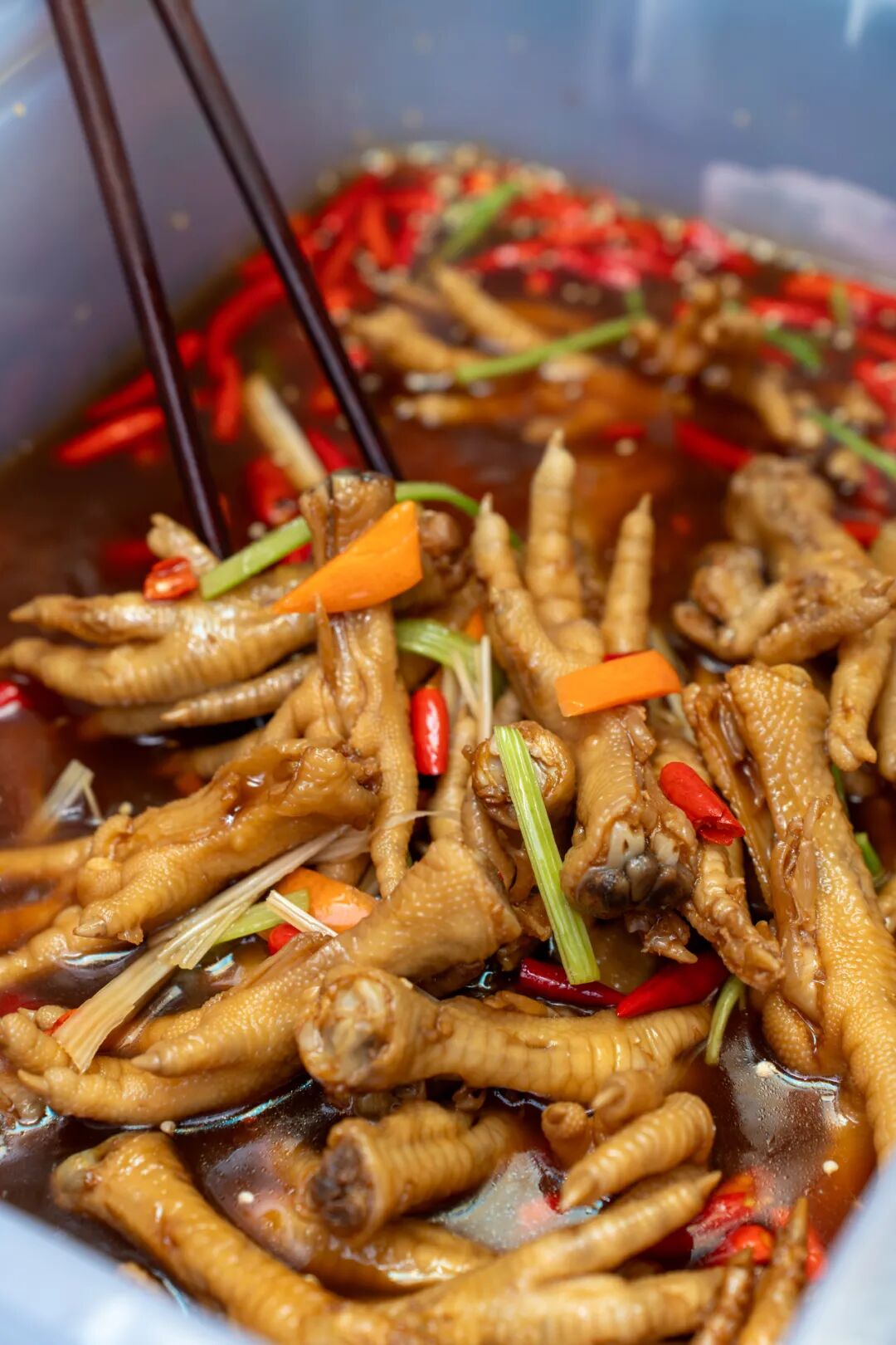 来金辰小吃街别的可以不吃,但李红英的鸡脚你不吃,等于白来。卤水汤汁出来的鸡脚糯糯的,大小属于中等吧,不知俘获了多少吃货的嘴。