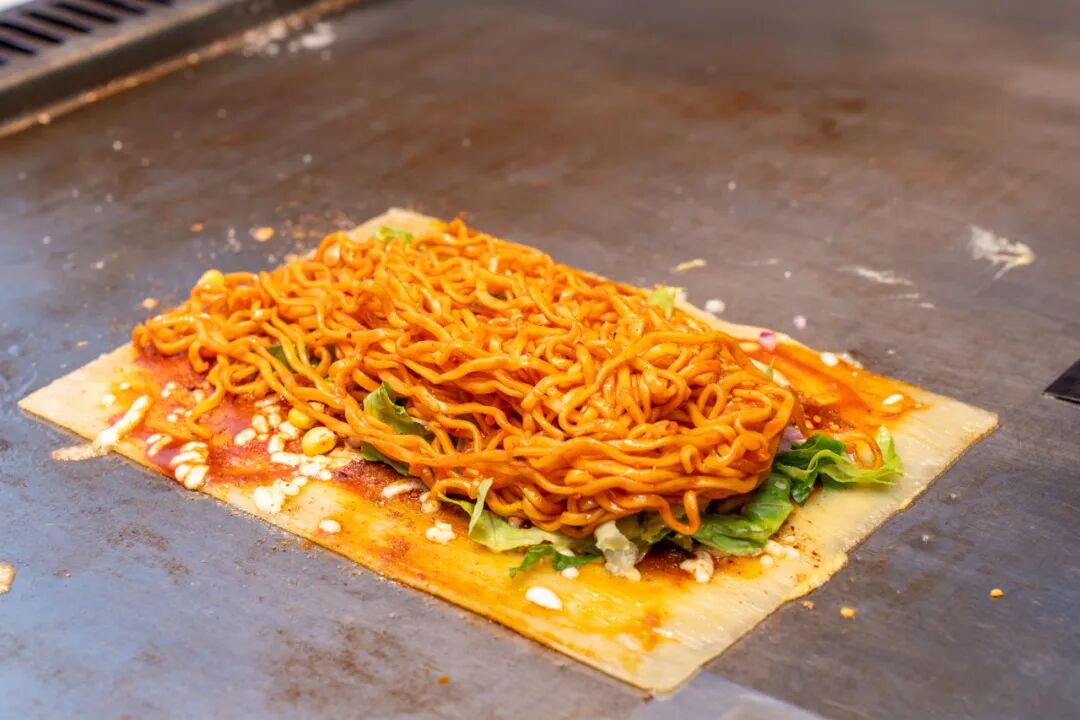 芝士火鸡面烤冷面是招牌,15块就能全款拿下。如果不喜欢火鸡面可以换成香肠,还可以看个人口味加料,总之就是超级香!