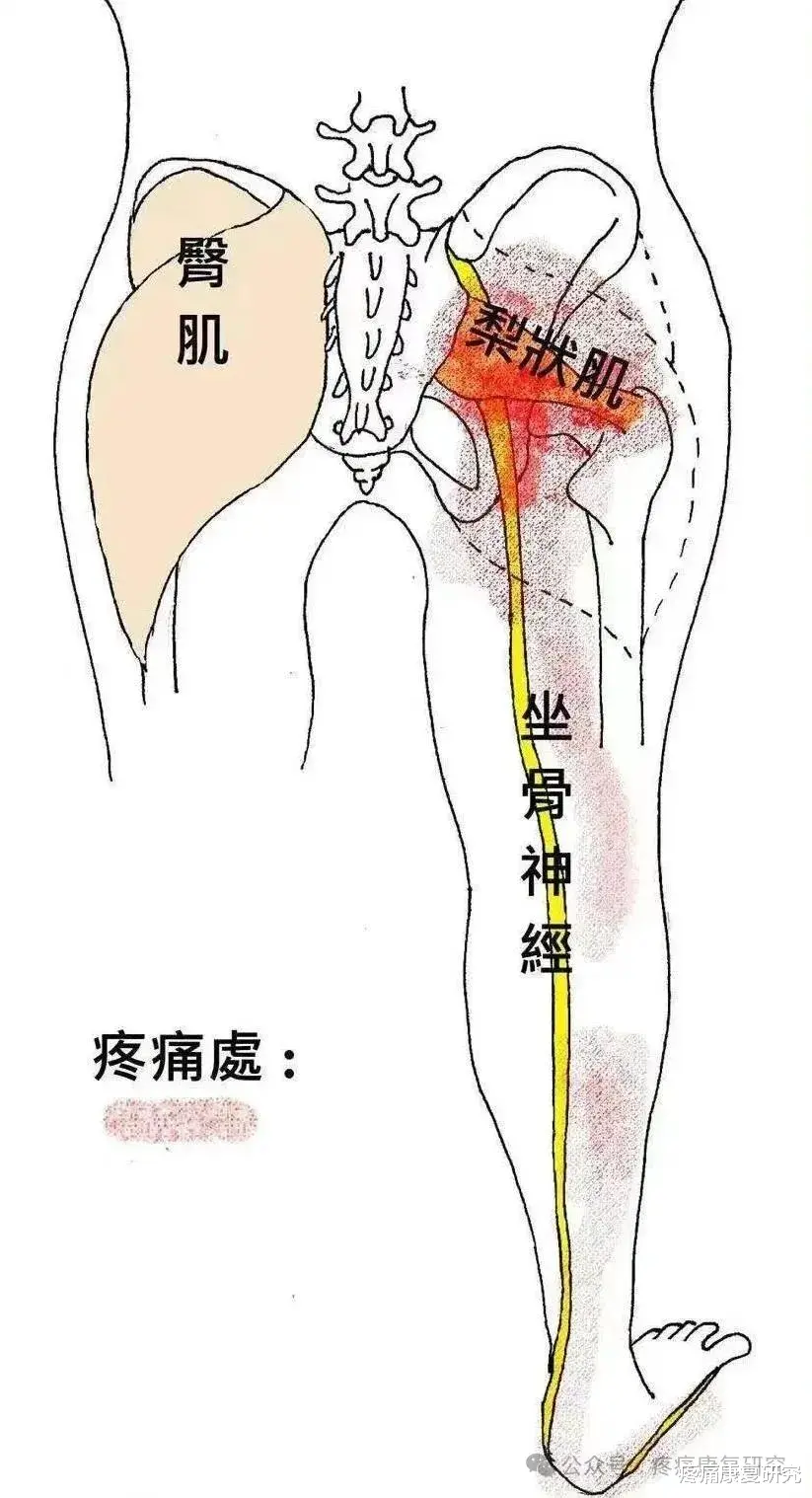 梨状肌综合征是坐骨神经卡压的常见诱因,需与腰椎源性坐骨神经痛鉴别。