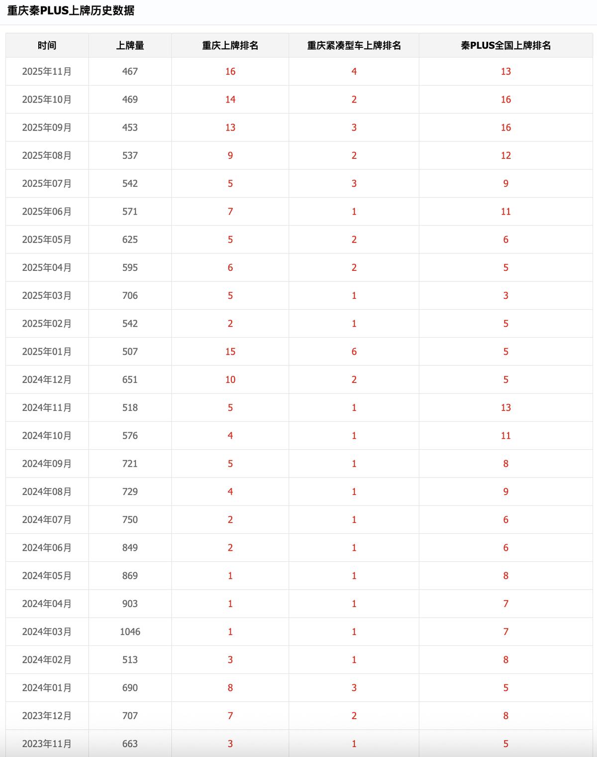 从上牌数据看,这种定位的成功得到了市场的直接验证。秦PLUS在重庆的月度上牌量长期稳居前列,在“重庆紧凑型车上牌排名”中多次夺得第1名,展现了其作为该细分市场标杆的统治力。秦L自上市以来,也迅速在中型车市场站稳脚跟,排名稳步提升,证明了市场对其价值的高度认可。在全国层面,两款车型也位居榜单前列,说明其产品力具有普适性,而不仅仅是区域性的偏好。
