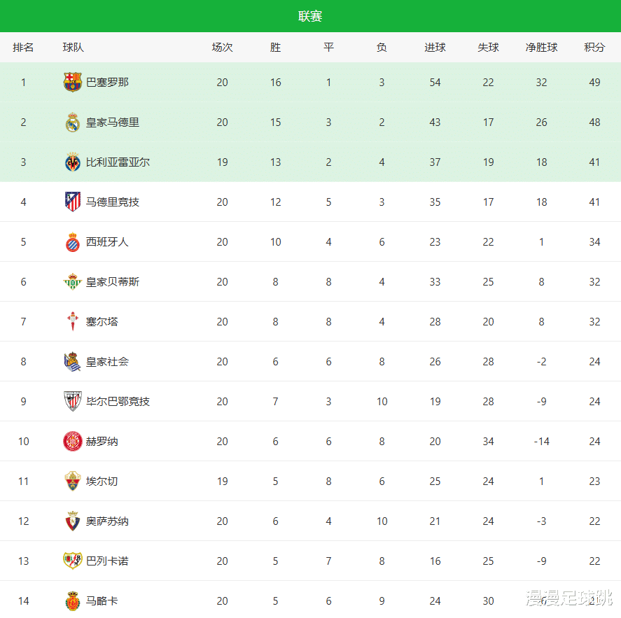 随着巴萨1-2+维拉0-1!西甲、英超最新积分榜出炉!非洲杯大结局