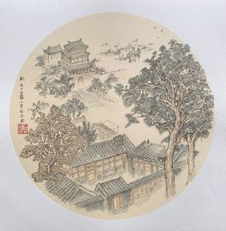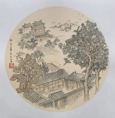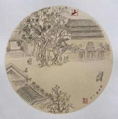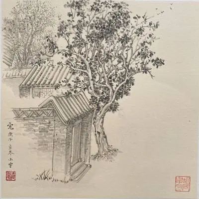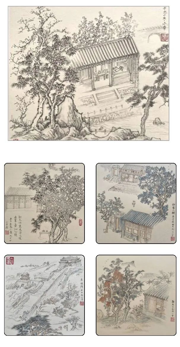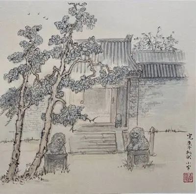 她的小品里,没有王公贵族的府邸,只有平民百姓的院落。《牛街头条旧宅》中,歪角的门楼、缺耳的门墩、墙根的狗尾巴草,都是她出生之地的真实再现;《奶奶家的四合院》里,窗台上的腌菜坛、院里的石榴树、树下的小板凳,藏着儿时听姥姥唤吃饭的温馨记忆。这些画作造型精准,上世纪五六十年代的屋宇风格、器物样式都经得起考证,这源于她对《芥子园画谱》的深耕——画中花草竹木,或舒朗清丽,或盘曲古雅,尽显传统笔墨意趣。
