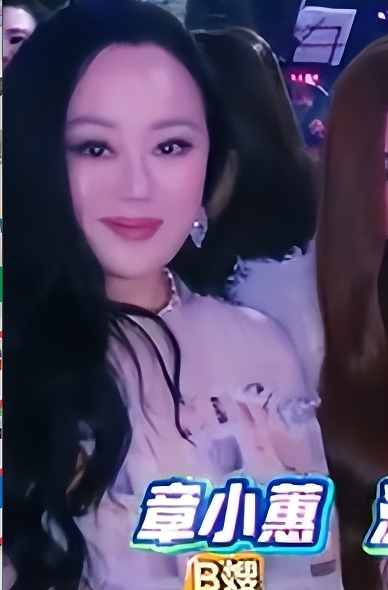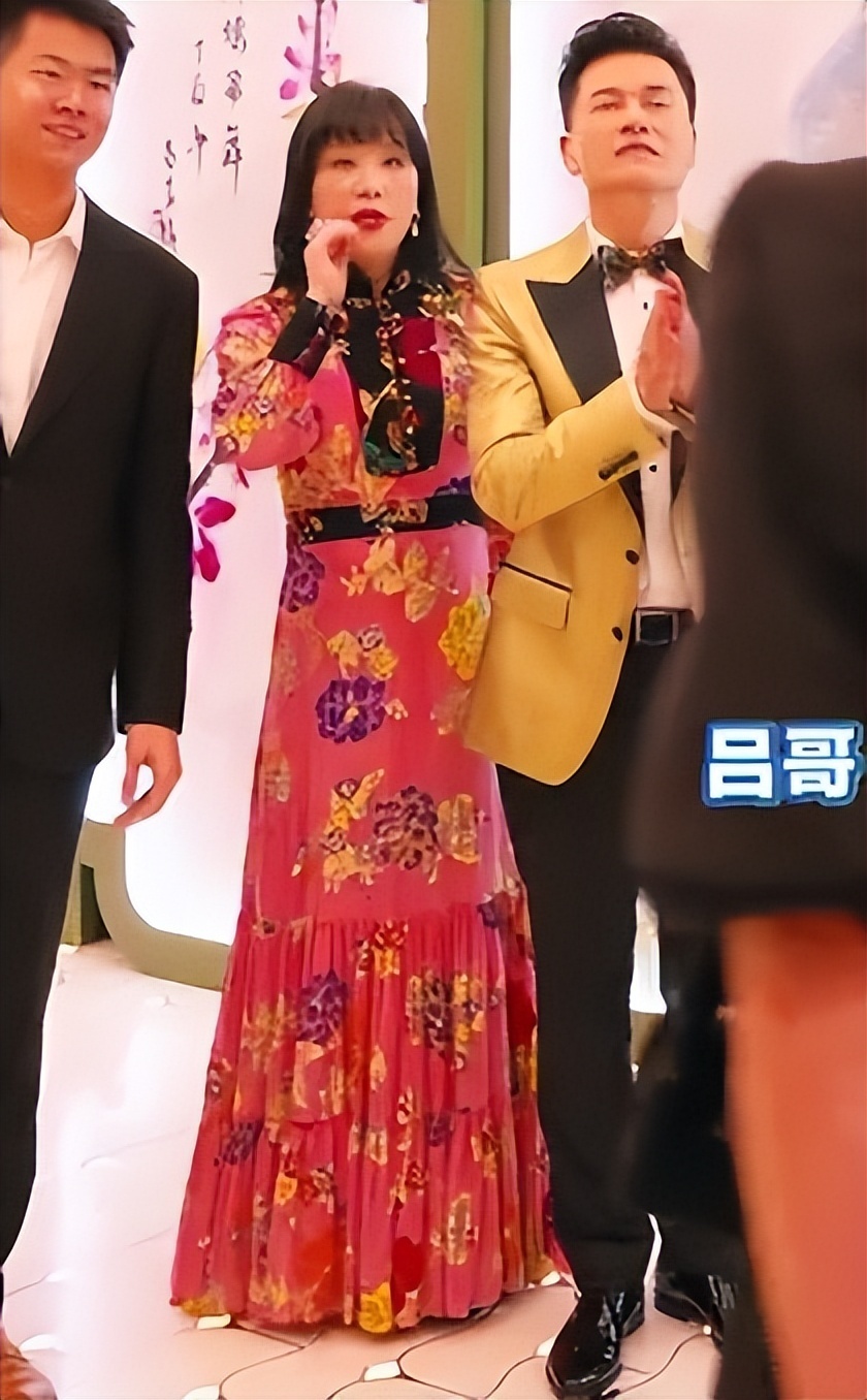 章小蕙则穿着一条由很多色块拼接的薄纱连衣裙,留着一头波浪长发,气质雍容华贵,不愧是人间富贵花。