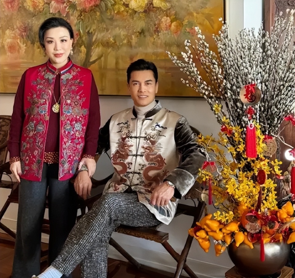 向华强一身格子西装,看起来精神又年轻,向太则穿着绣满金线的新中式华服,雍容华贵。