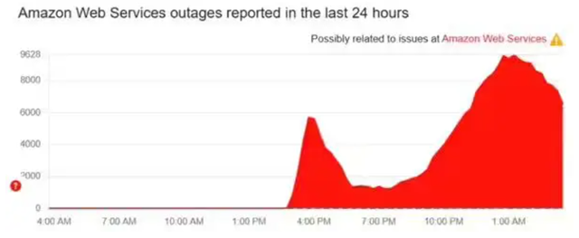 九、AWS域名解析故障2025年10月,亚马逊云计算服务(AWS)在美国弗吉尼亚北部(us-east-1)区域发生大规模宕机,导致多个依赖AWS的主流网站和服务出现访问异常。事故持续数小时,波及电商、金融、云安全、AI平台等多个行业,被认为是近年来最严重的区域性服务中断之一。