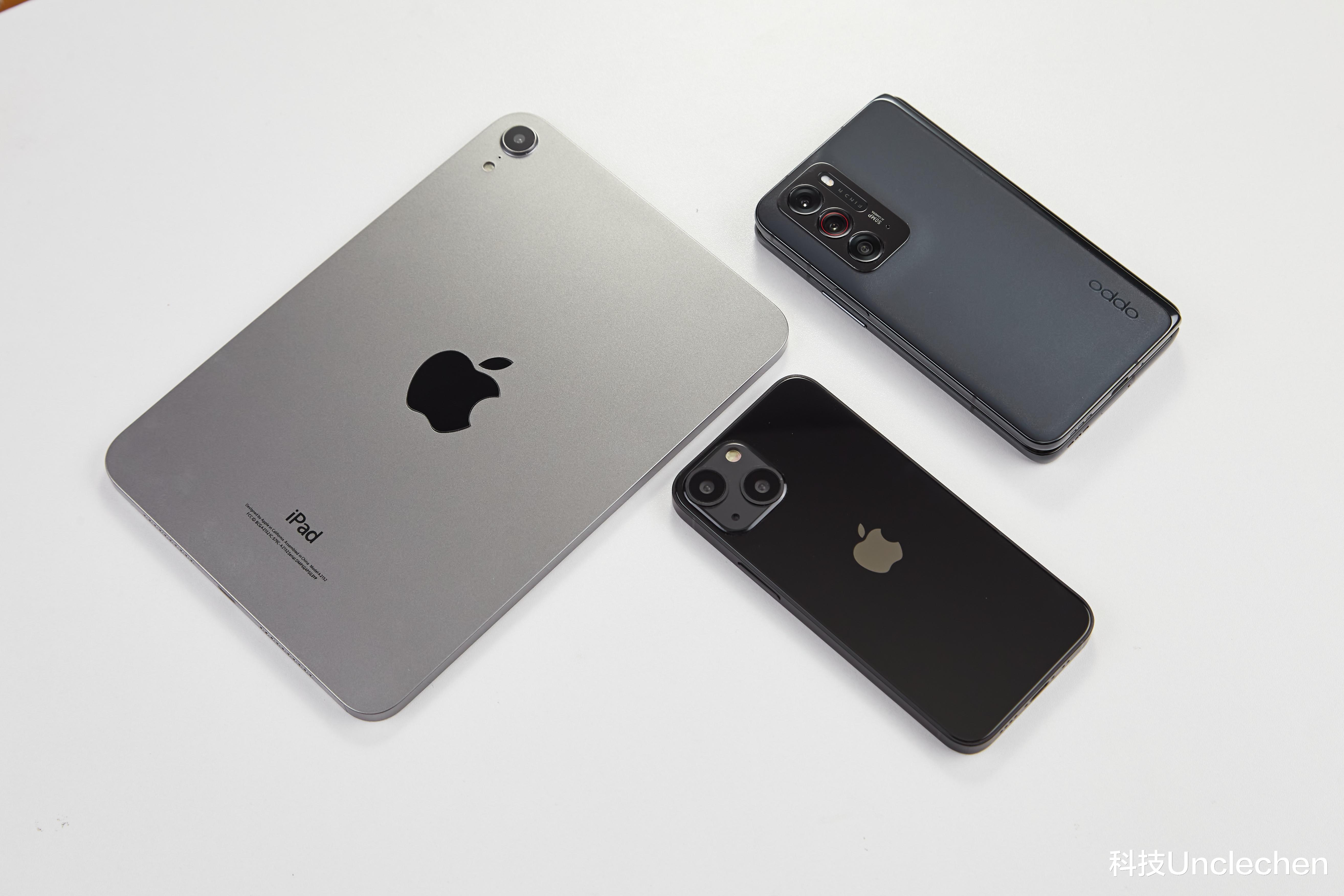左:iPad mini6;中:OPPO Find N;右:iPhone13 mini↑