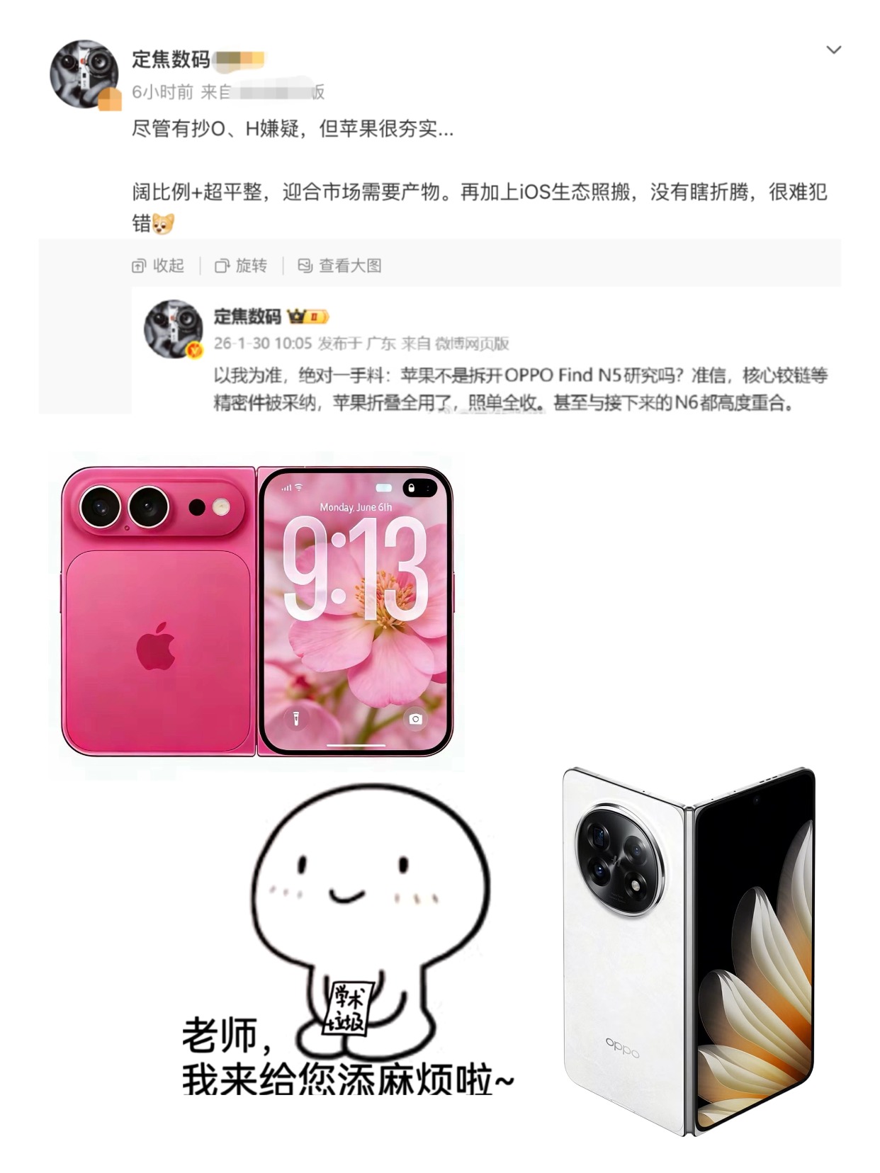 难道苹果自己不会做折叠屏吗?没想到憋了这么久的iPhone Fold,到头来非常核心的铰链是学OPPO的,果粉有失望的吗?