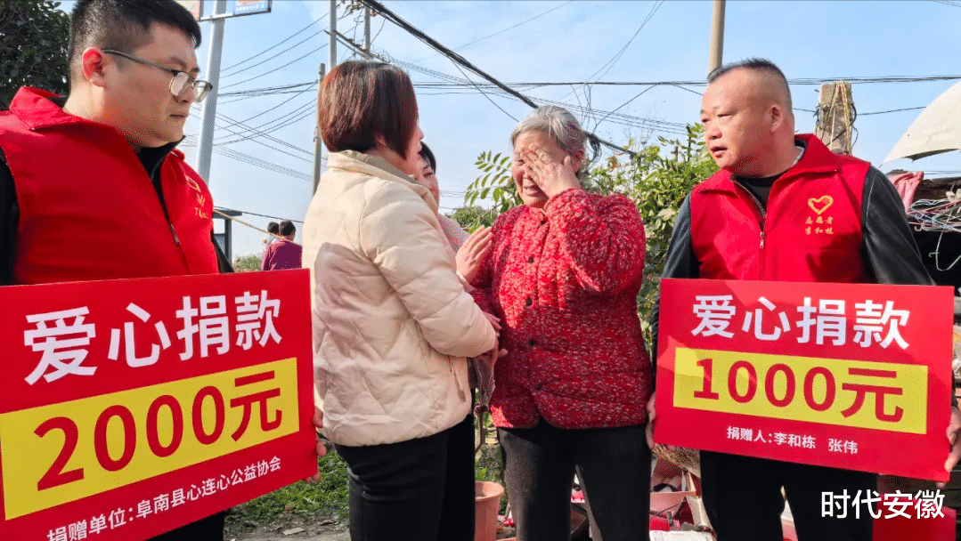 11月23日,阜南县文明城市创建中心主任郑露带领10多名县心连心公益协会的志愿者,给李刚家送来特别的关爱,该协会带来了2000元及牛奶、鸡蛋、食用油,志愿者李和栋个人捐助了1000元。郑露安慰李刚夫妻俩,要保持良好的心态,勇敢面对生活,战胜眼前困难。“爱心不分大小,同时希望社会上的爱心组织和个人向这个不幸家庭献出一份爱心。”郑露表示。