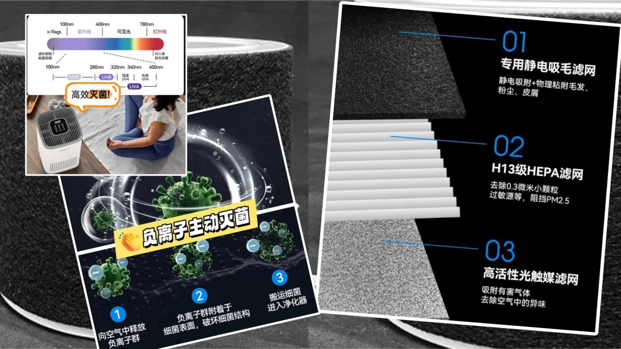 ·HEPA负责细颗粒(皮屑、粉尘等),把易刺激的东西拦住;