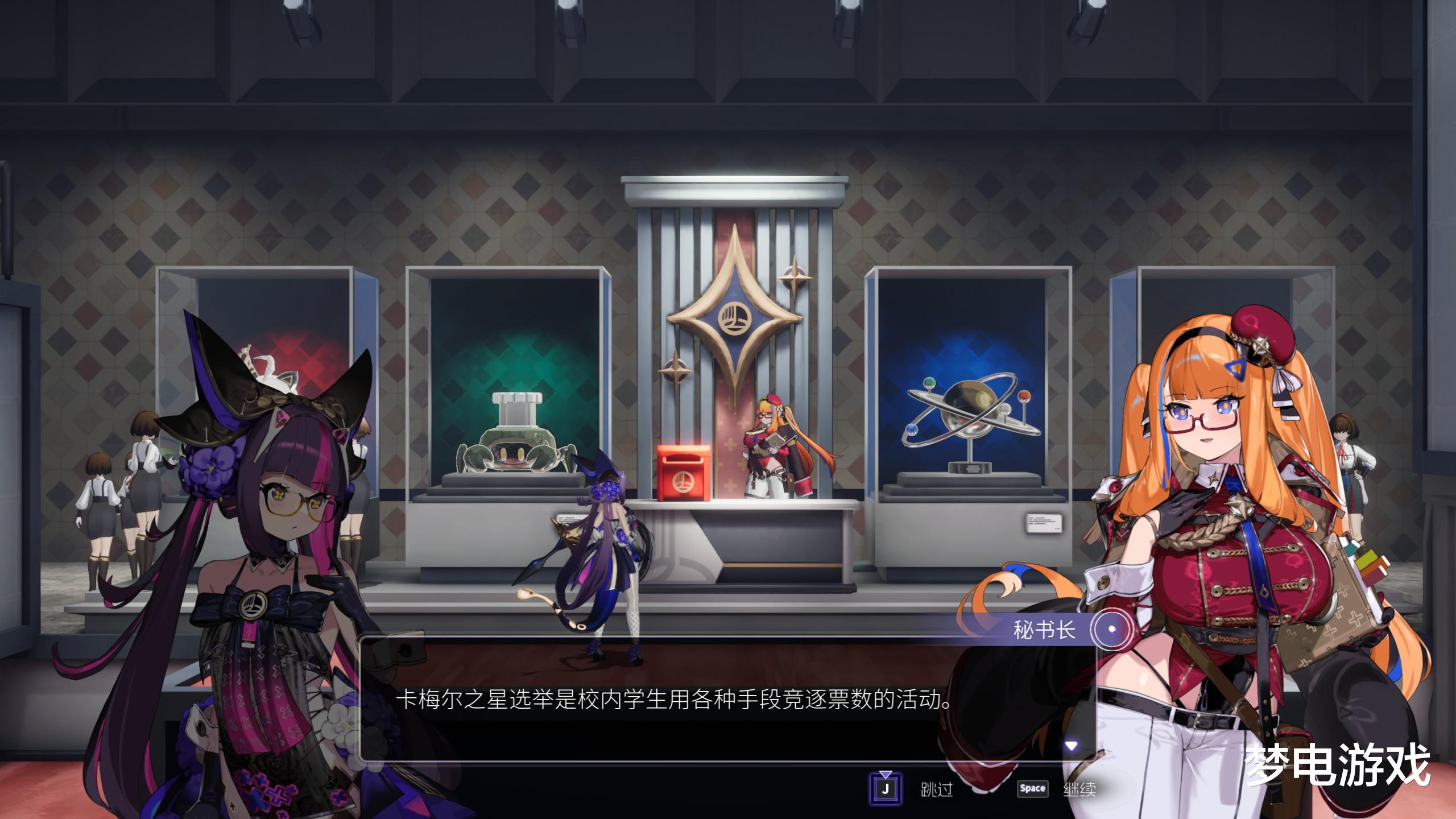 游戏是常规的“总分总”结构,开局介绍下背景设定,然后就让玩家前往地图的不同区域进行冒险与探索,完成四个分支获得信物再回中心区。对于玩家前推进度,制作组做了个符合学院背景的“得票率”设定,卡梅尔之星需要最高的投票率才能获得。