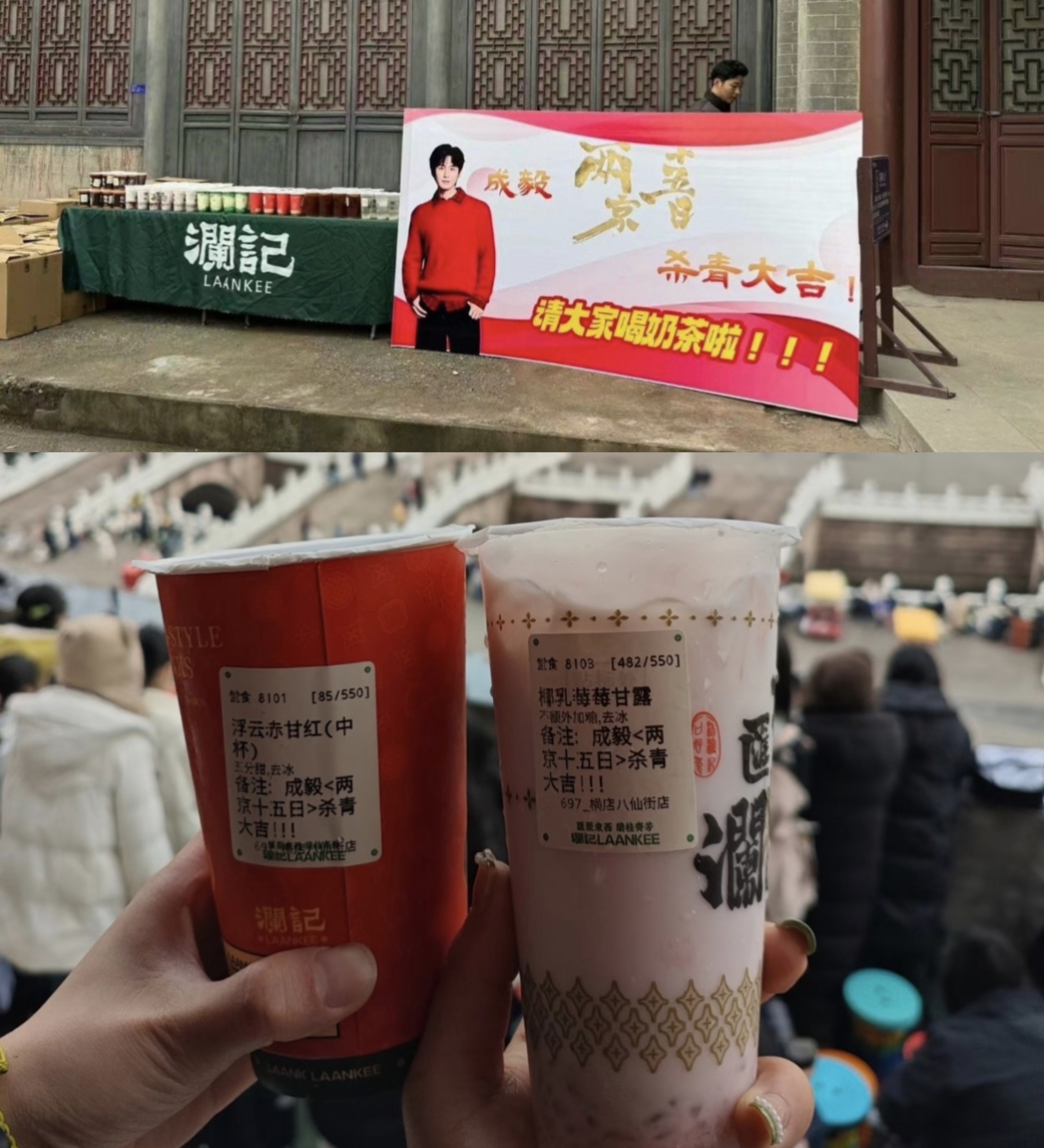 剧组杀青向来是影视圈的重要节点,多数演员会选择与主创团队聚餐或发布告别文字。而成毅此次却将关注点放在了粉丝身上,自掏腰包为到场应援的"果果"们准备了不限量奶茶。现场照片流出后,网友们纷纷感叹这份宠粉力度实属罕见——没有数量限制,没有领取门槛,只要是为他而来的粉丝,都能接过这杯承载着谢意的饮品。这种近乎"霸道"的温柔,恰是他一贯以来对待支持者的态度:不将粉丝视为遥远的数据,而是真切记得每一份陪伴的重量。