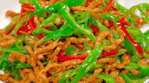 第一道青椒肉丝,猪瘦肉切成细丝,用 1 勺生抽、少许淀粉抓匀腌制 5 分钟。青椒去籽切条,葱姜蒜切末。锅中放少许油,油热后放入肉丝滑炒至变色,盛出备用。