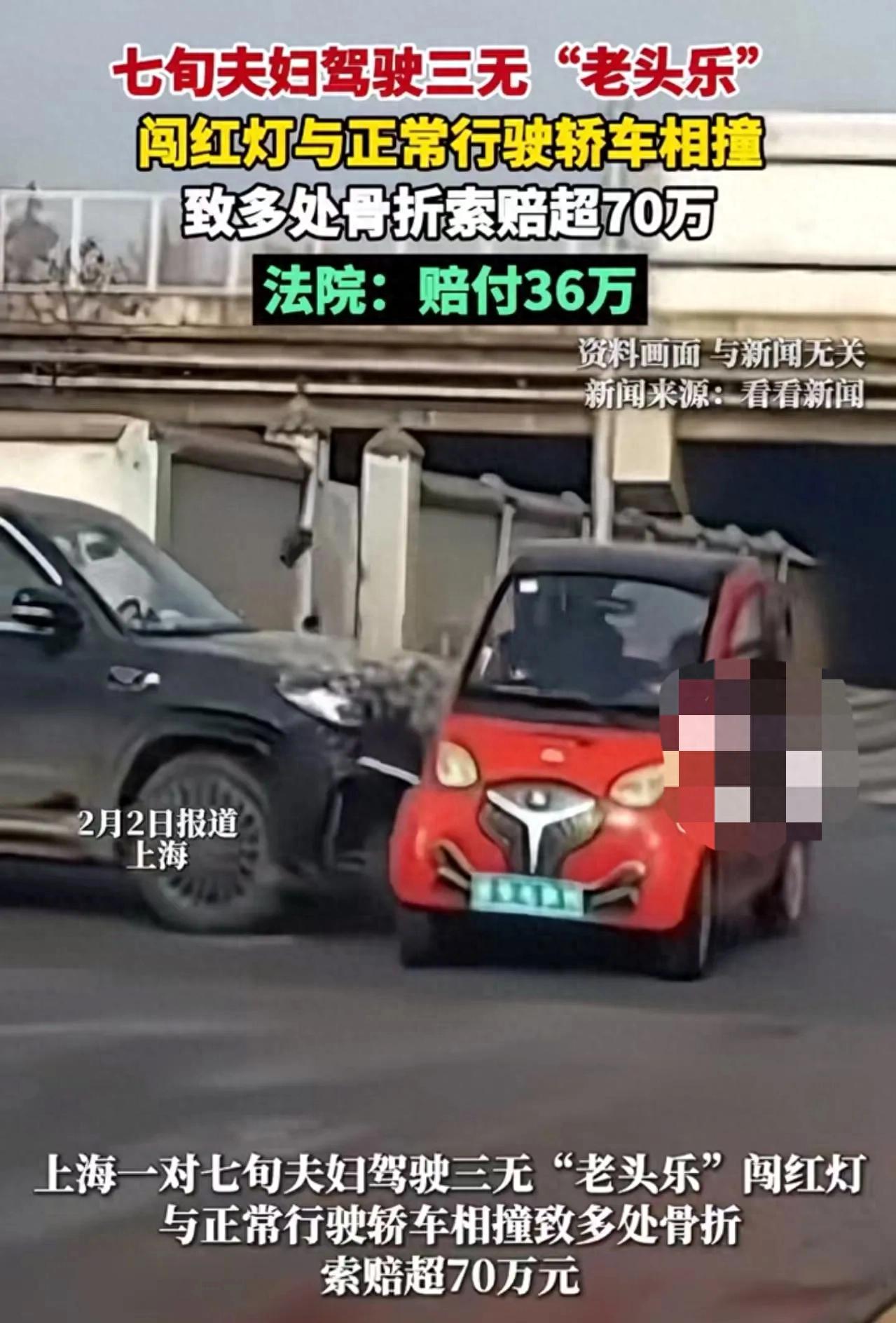 沪上曾有一起类似的低速电动车事故,同样是无证无牌的老人闯红灯撞轿车,轿车司机因“未减速观察”被判次要责任,引发关于规则与同情的热烈讨论。