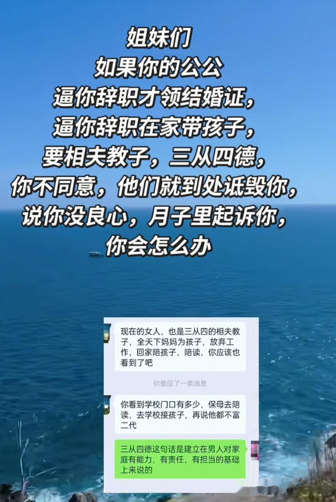 2024年2月,李捷和陈明通过相亲认识,相处一个月确定关系,不久后李捷怀孕。2025年5月,两人按习俗办了婚礼,却迟迟没领证。陈明的理由从一开始“没选好日子”,变成了“你必须辞掉工作来上海,否则不领证”,要知道,李捷月薪1.5万,而陈明曾向她家人透露,“她辞职后能领几万生育津贴”。所以,李捷的公公逼其辞职才能领结婚证,然后辞职后不能出去找工作,就在家带孩子。