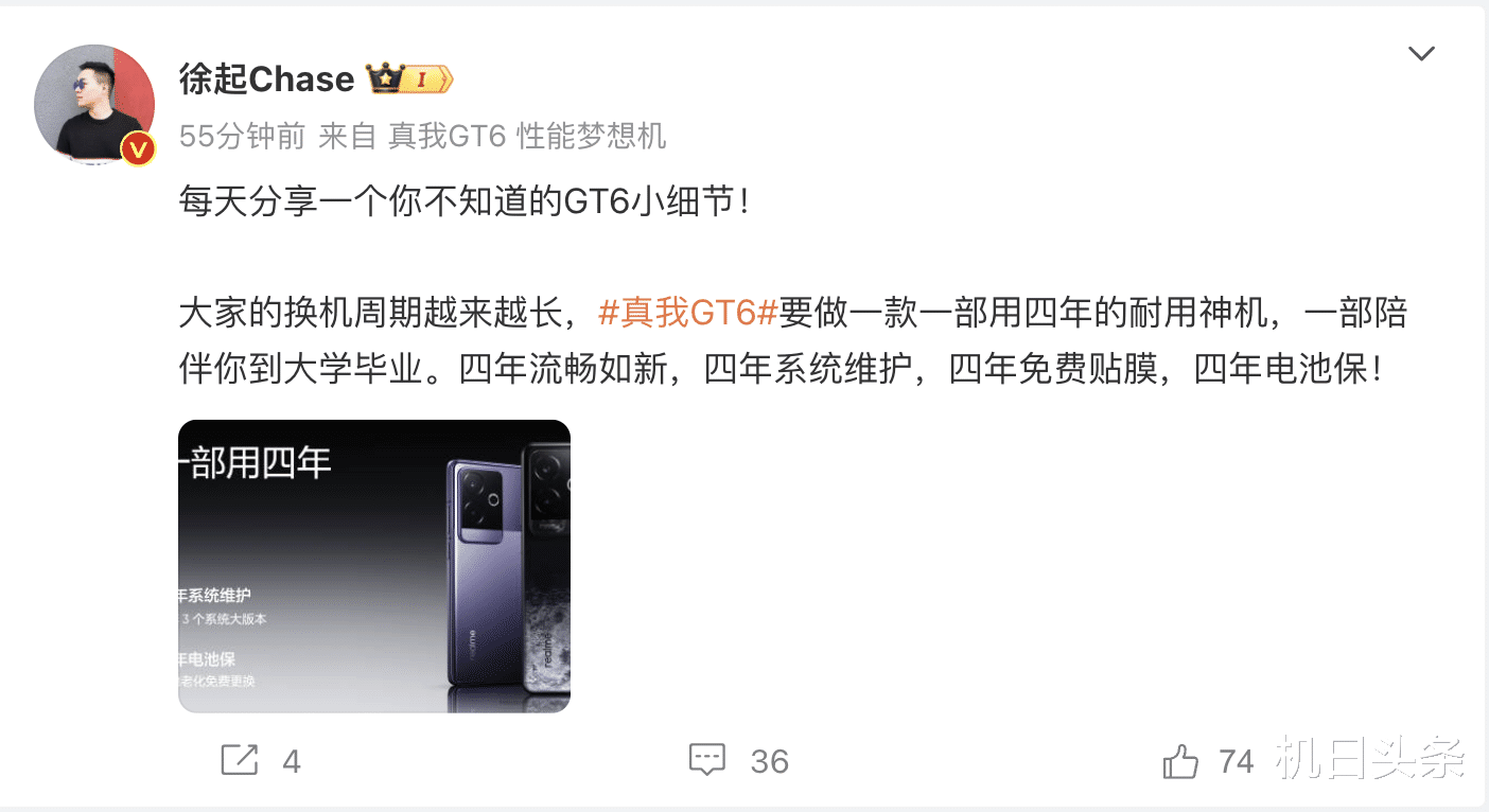 关键是真我GT6还是一台能够流畅用4年的神机,官方提供了四年系统微淘、贴膜和电池保等服务,可谓是诚意很足。