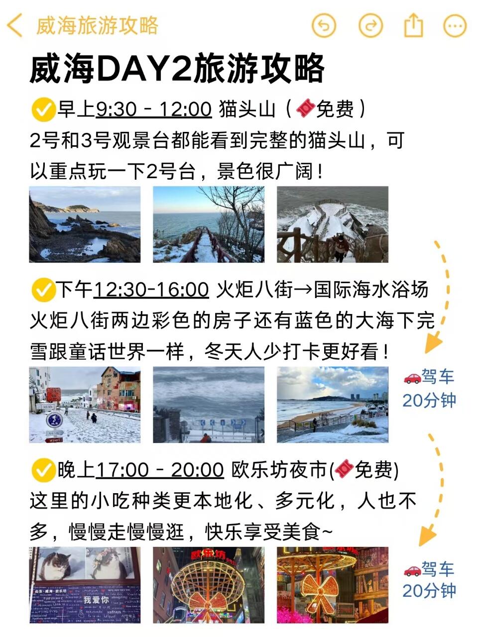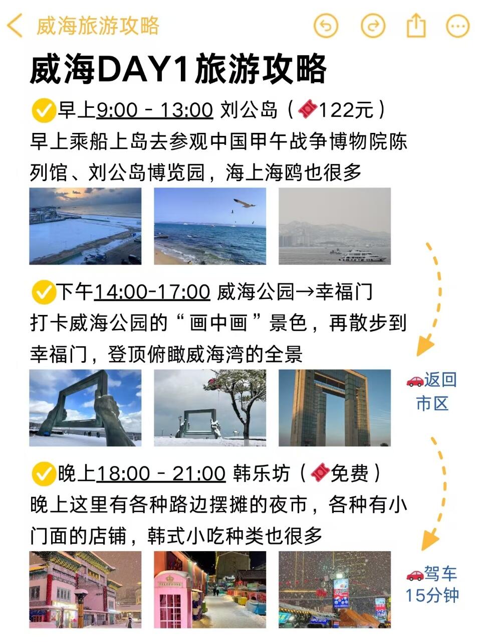 🎊第一天时间比较紧,因为在刘公岛那里呆了两个小时,⛰还去威海公园、幸福门、韩乐坊,一天下来虽然累但是看到风景之后总是觉得能量满满还能走...🚶