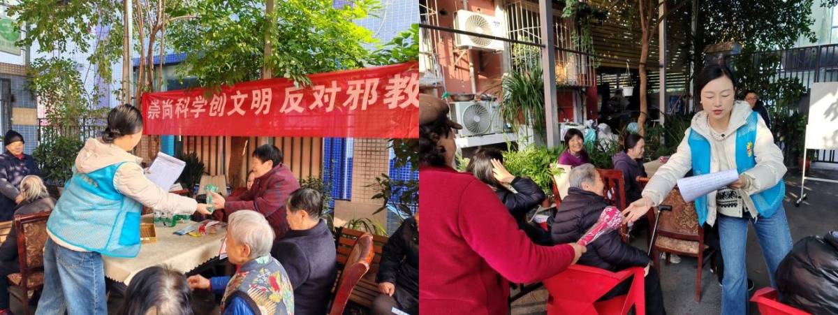 社工向居民发放宣传折页,宣传“七步”协商议事法