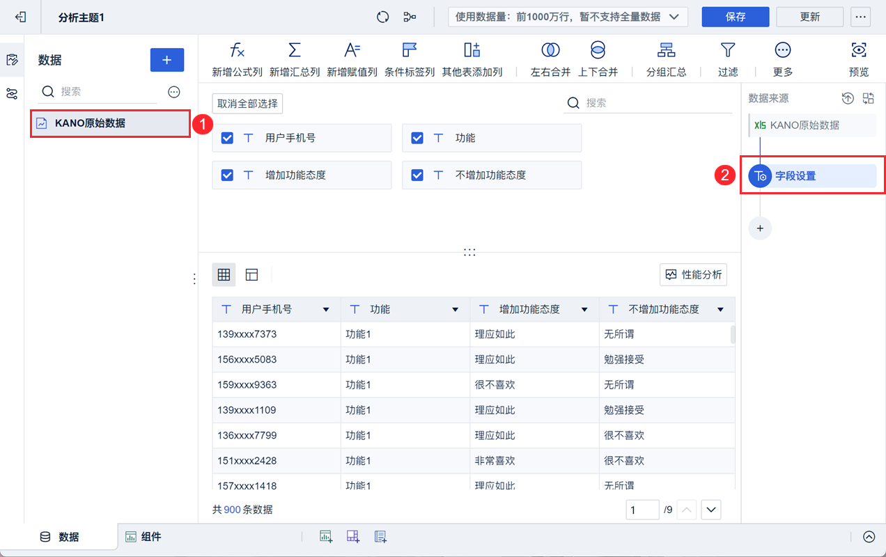 接着在新增公式列列“合并态度”,将“增加功能态度”与“不增加功能态度”进行合并: