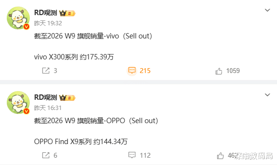 vivo X300、OPPO Find X9系列则深陷“同质化内卷”,虽在影像、快充等方面堆料十足,但缺乏核心技术壁垒,销量始终难以突破200万部。