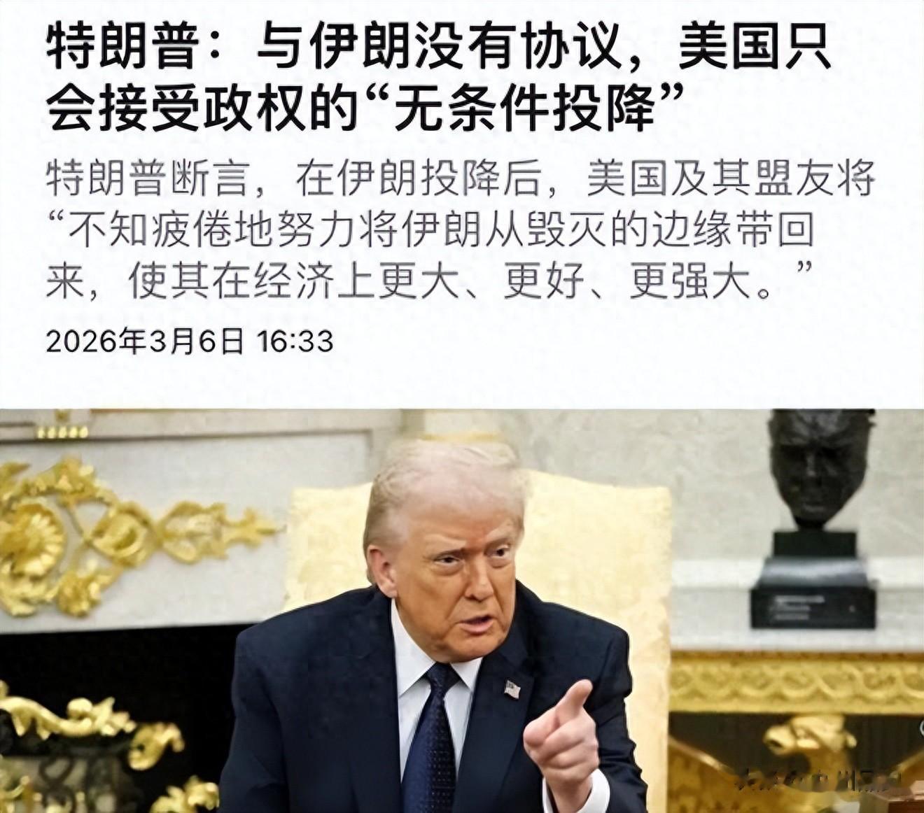 伊朗这边什么态度呢?一个字:硬。伊朗总统佩泽希齐扬说,伊朗过去没有、将来也不会屈服于"欺凌、压迫和侵略","绝不允许敌人侵占哪怕一寸土地"。伊朗外长阿拉格齐否认伊朗会像特朗普所说的那样"无条件投降",称伊朗将为了保卫领土、人民和尊严而继续战斗。