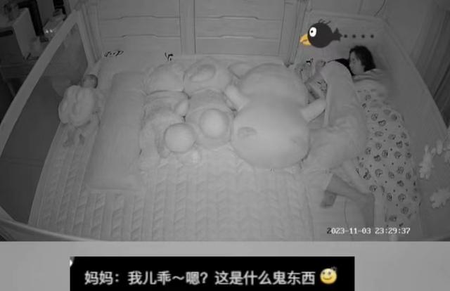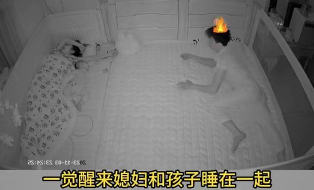 从监控画面中可以看到,妈妈盖着碎花被子,紧紧地贴在床的一侧,睡得正香,而宝宝则依偎在妈妈的咯吱窝里,同样睡得十分坦然。
