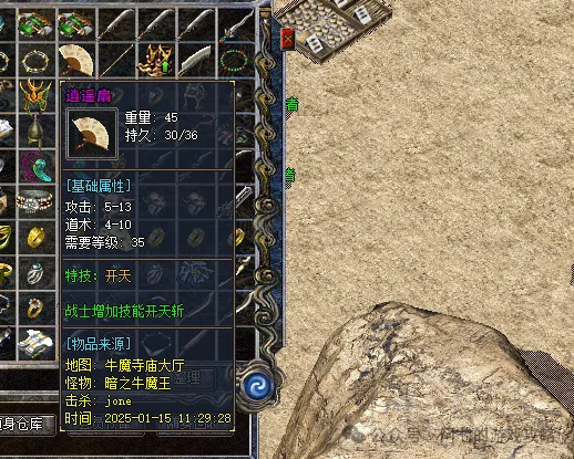 听说有玩家拿到一把“逍遥扇”,上面标注的特技竟然是“开天斩”——这可是战士的专属技能!
