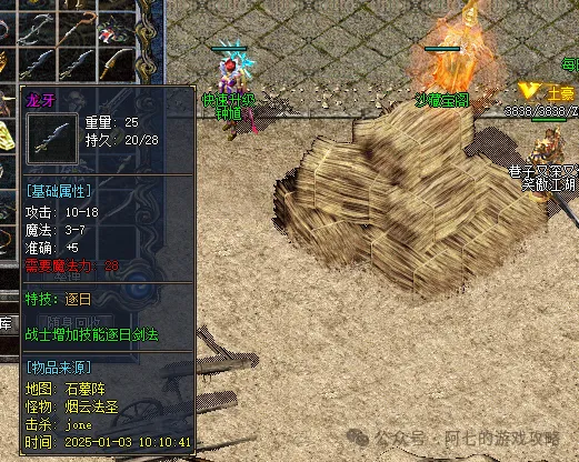 龙牙:战士特技也别乱挂!紧接着,玩家们又爆出一把“龙牙”,上面竟然印有“逐日剑法”的特技。