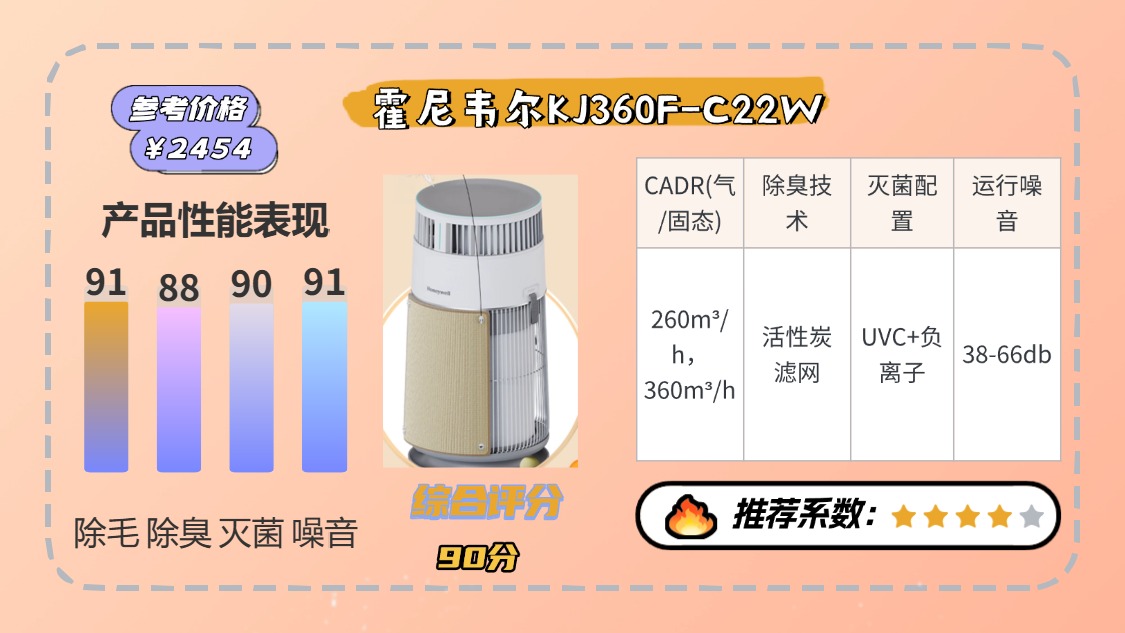 2、霍尼韦尔KJ360F-C22W宠物空气净化器