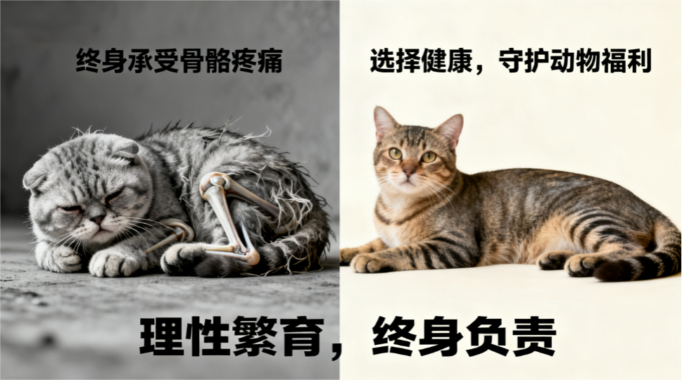目前,全球多地动物保护组织呼吁抵制繁育与购买苏格兰折耳猫,认为这是对动物福利的侵害。若已饲养该品种,需以终身负责的态度做好健康管理,通过科学护理减轻其痛苦。对于潜在养猫者,更建议选择无遗传缺陷的自然品种,用理性选择守护动物健康。