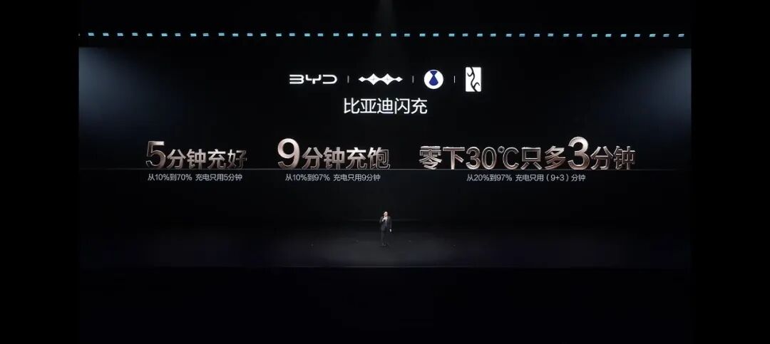 “今天,我们用两项颠覆性成果,正式宣告:电动化上半场完美收官,新能源汽车从此迈入闪充时代!”比亚迪董事长兼总裁王传福现场定调。