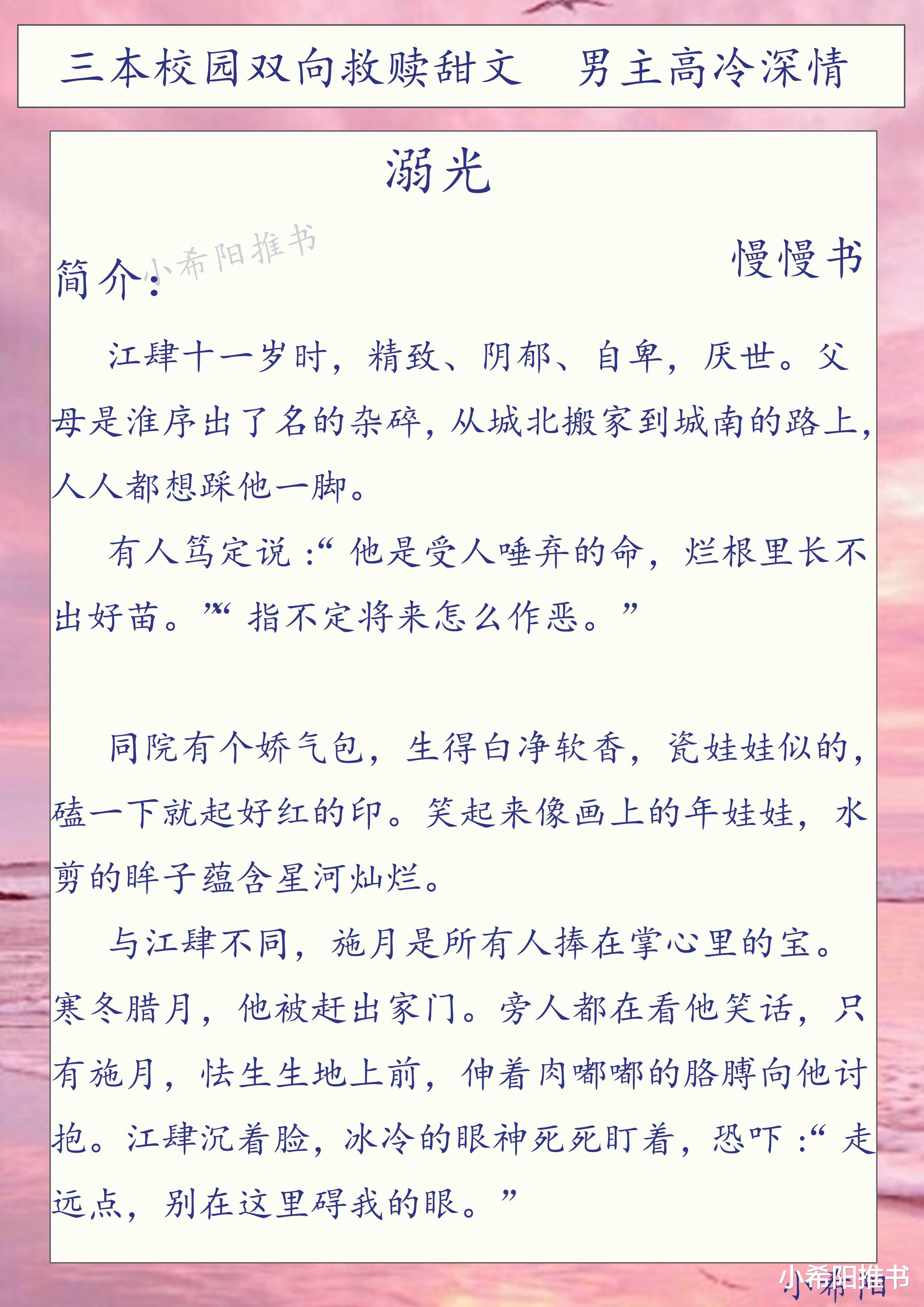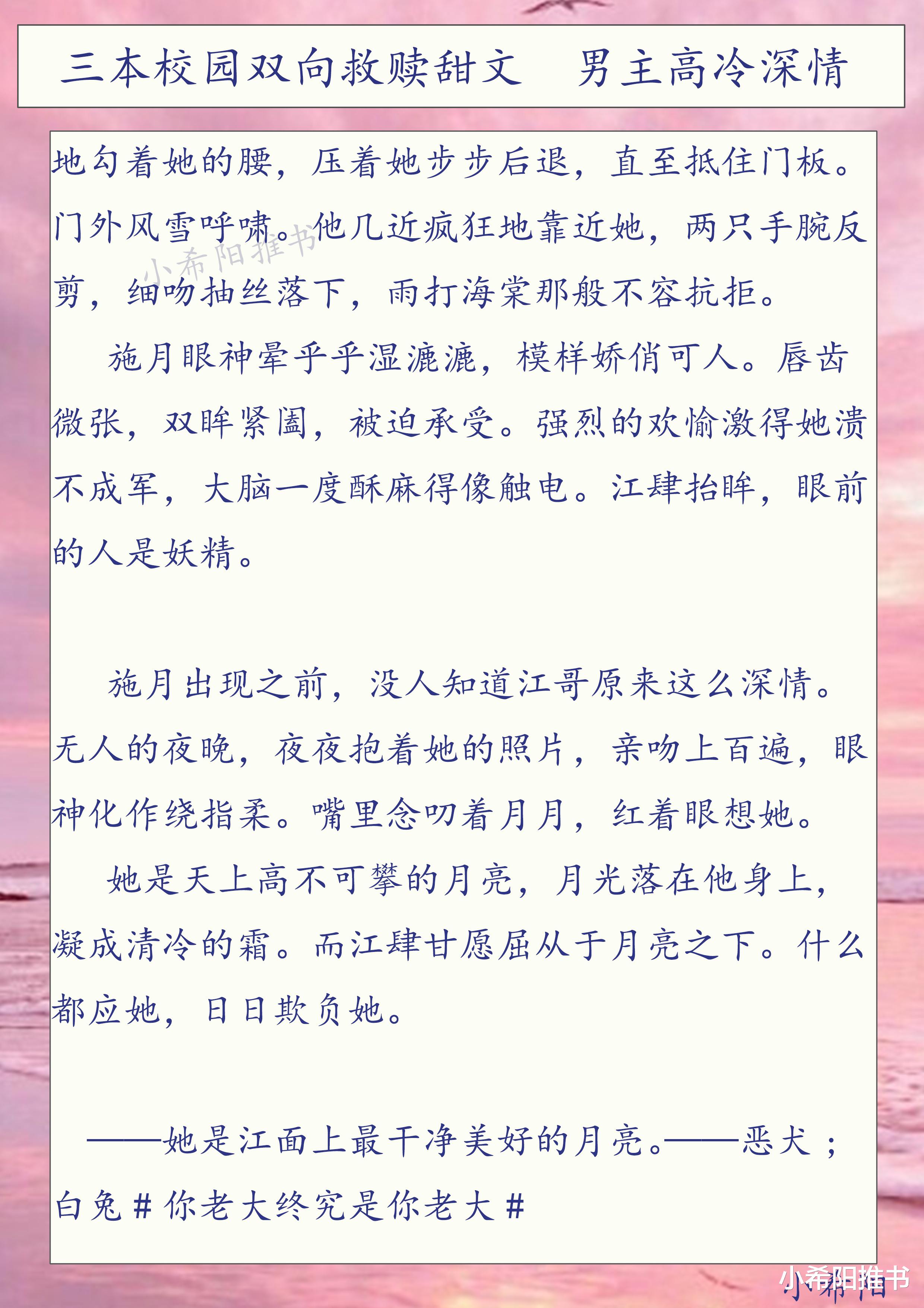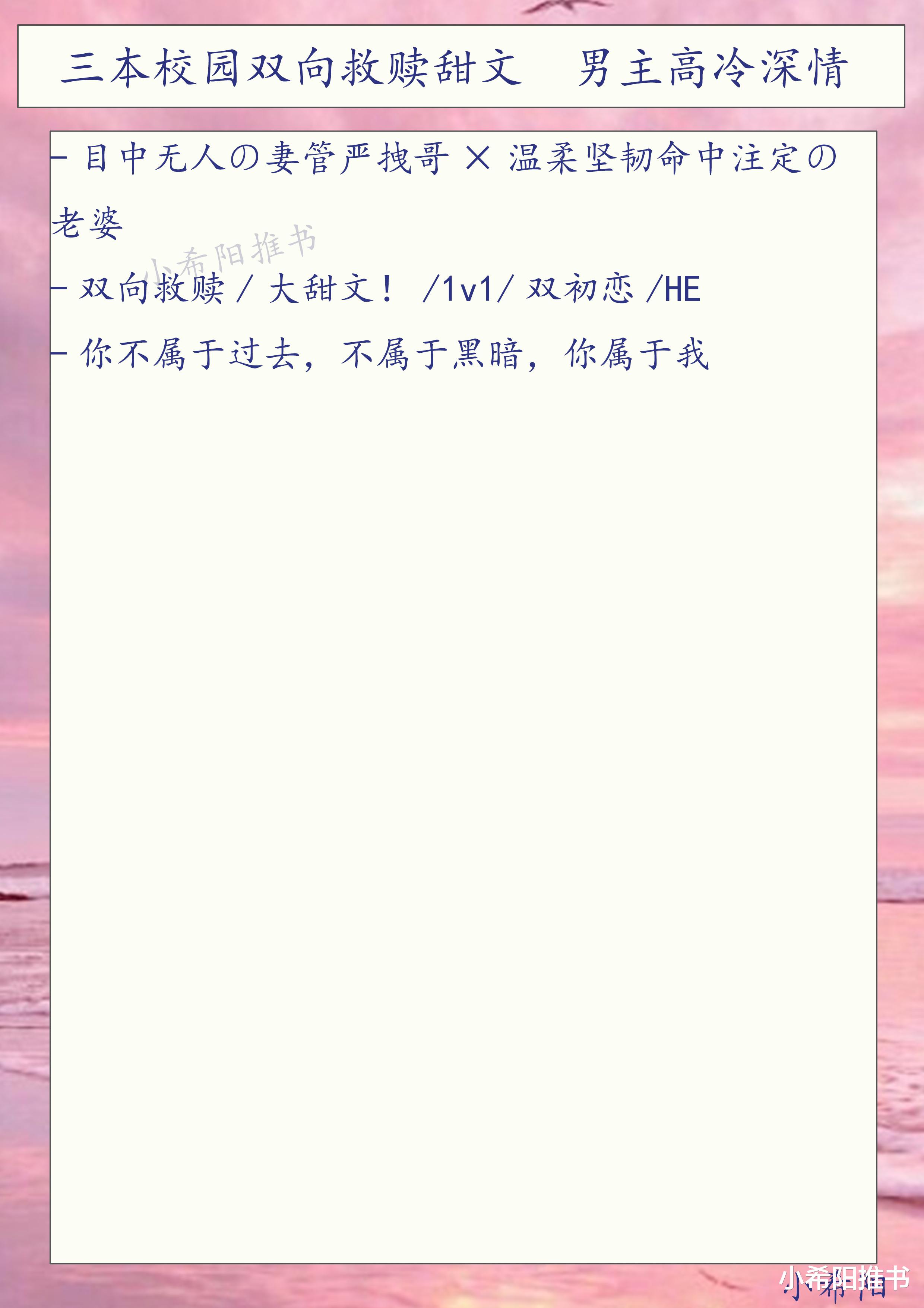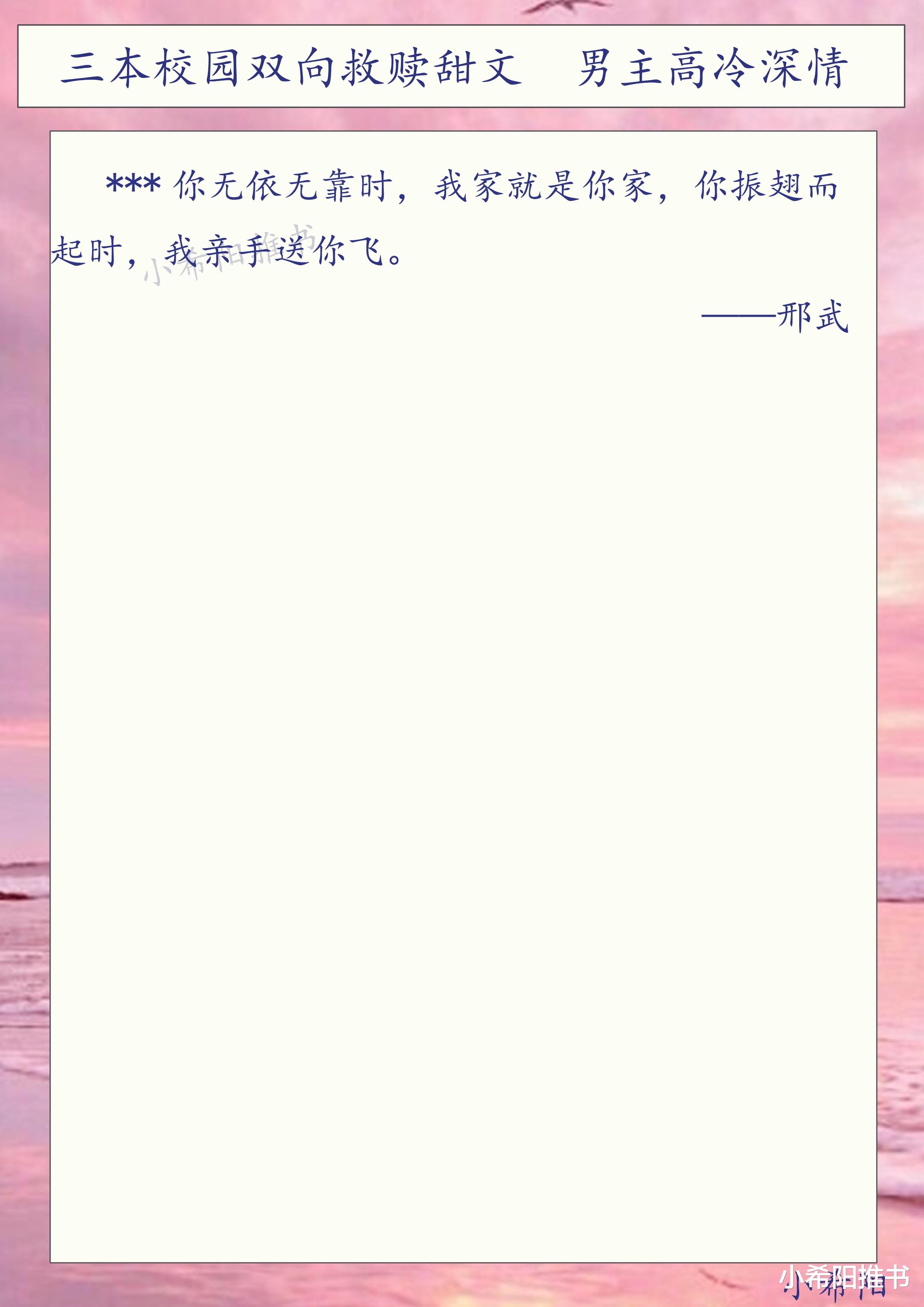 今天推荐三本校园救赎甜文,这三本真的很好看,男女主互相救赎彼此一起成长努力。男主都是外表冷淡,眼里只容下一人,那个照亮了他深陷黑暗世界的女孩。