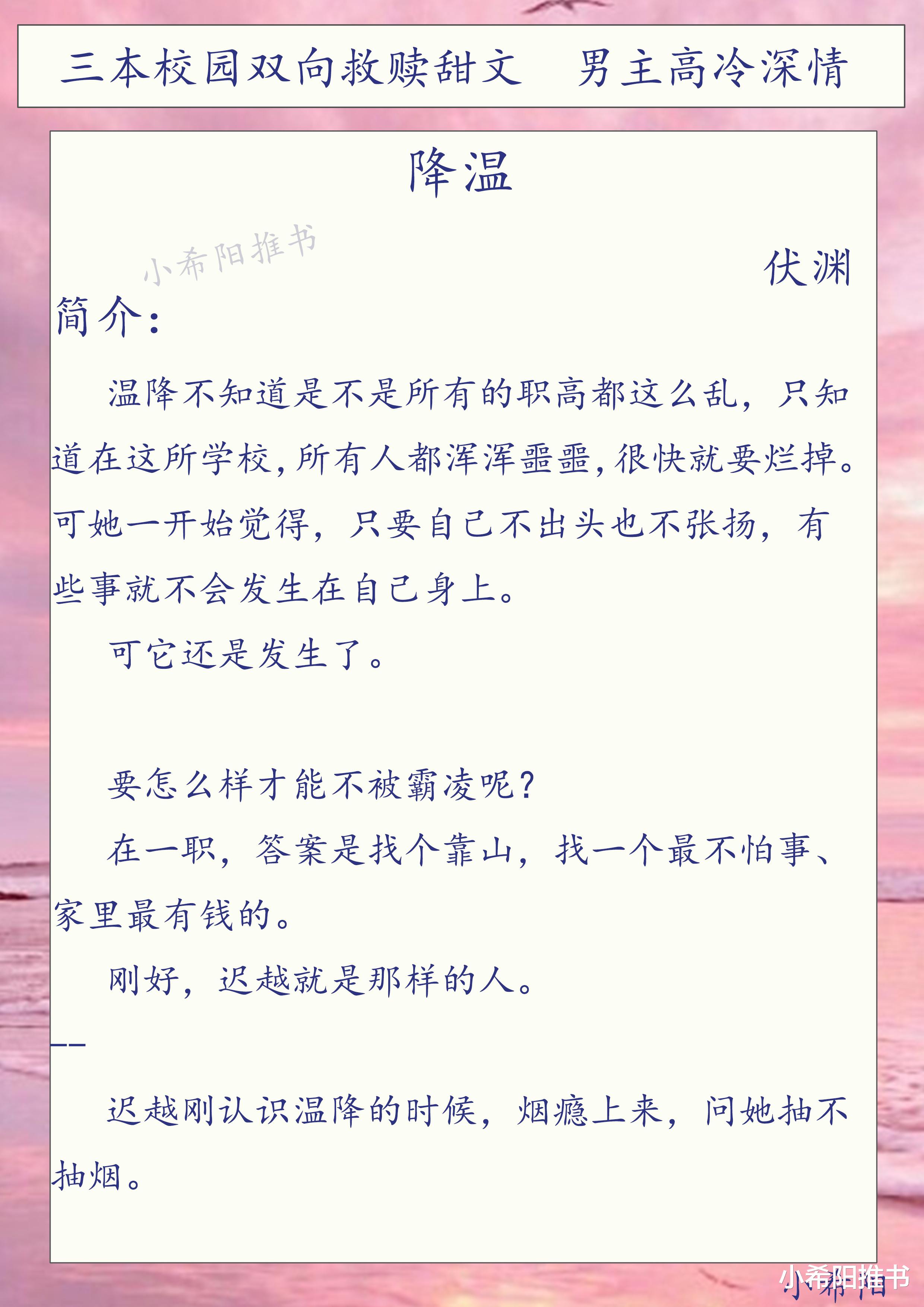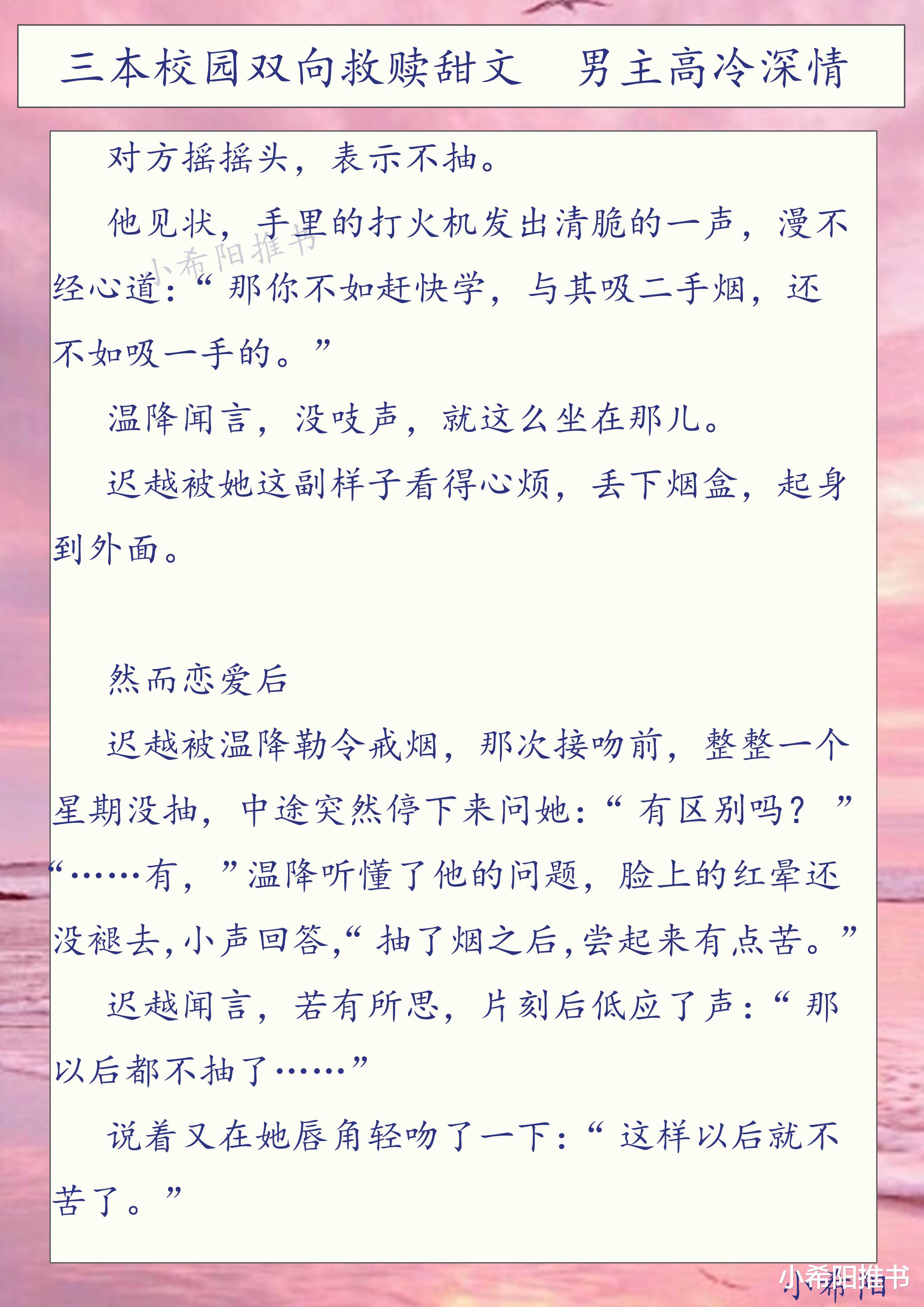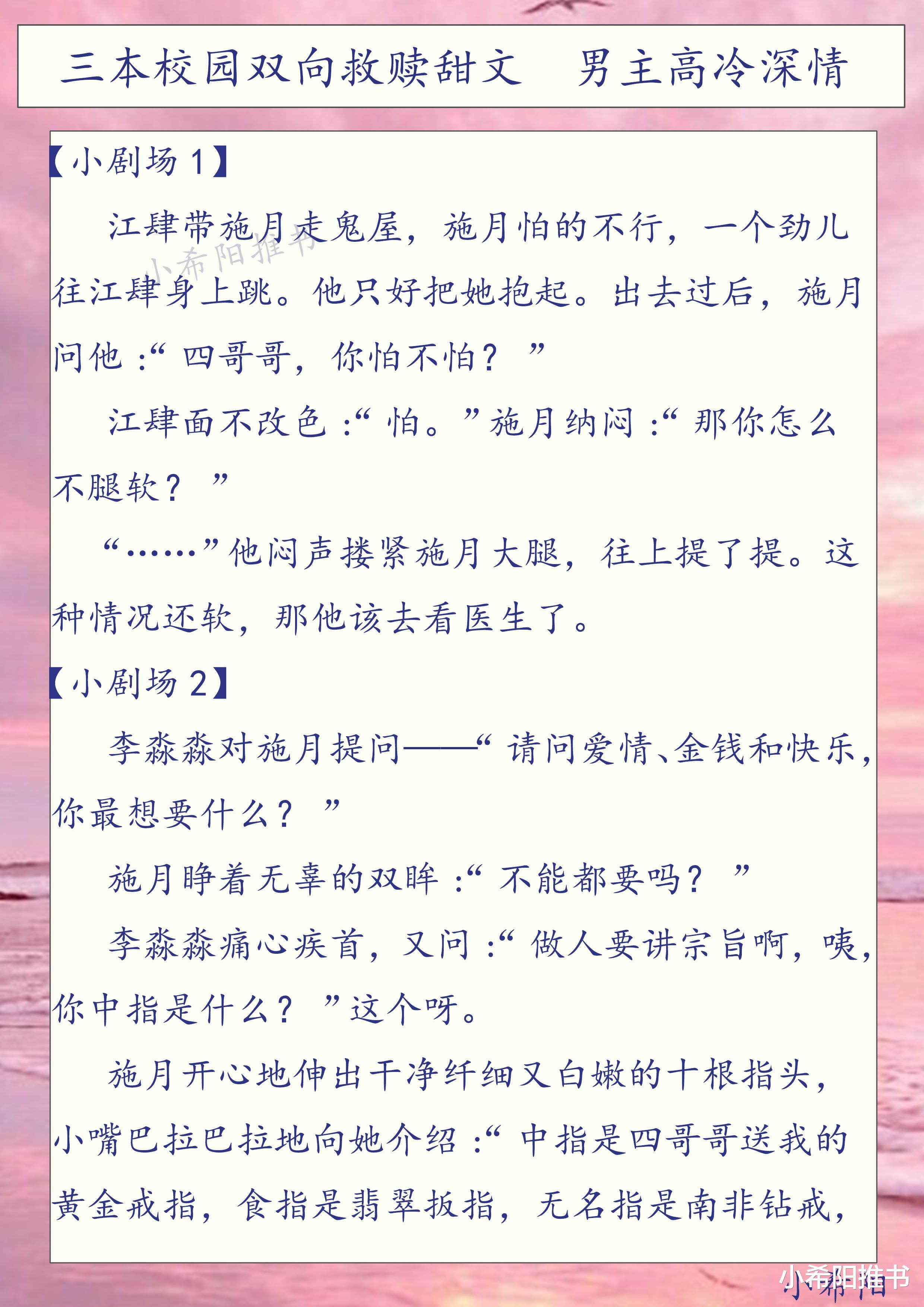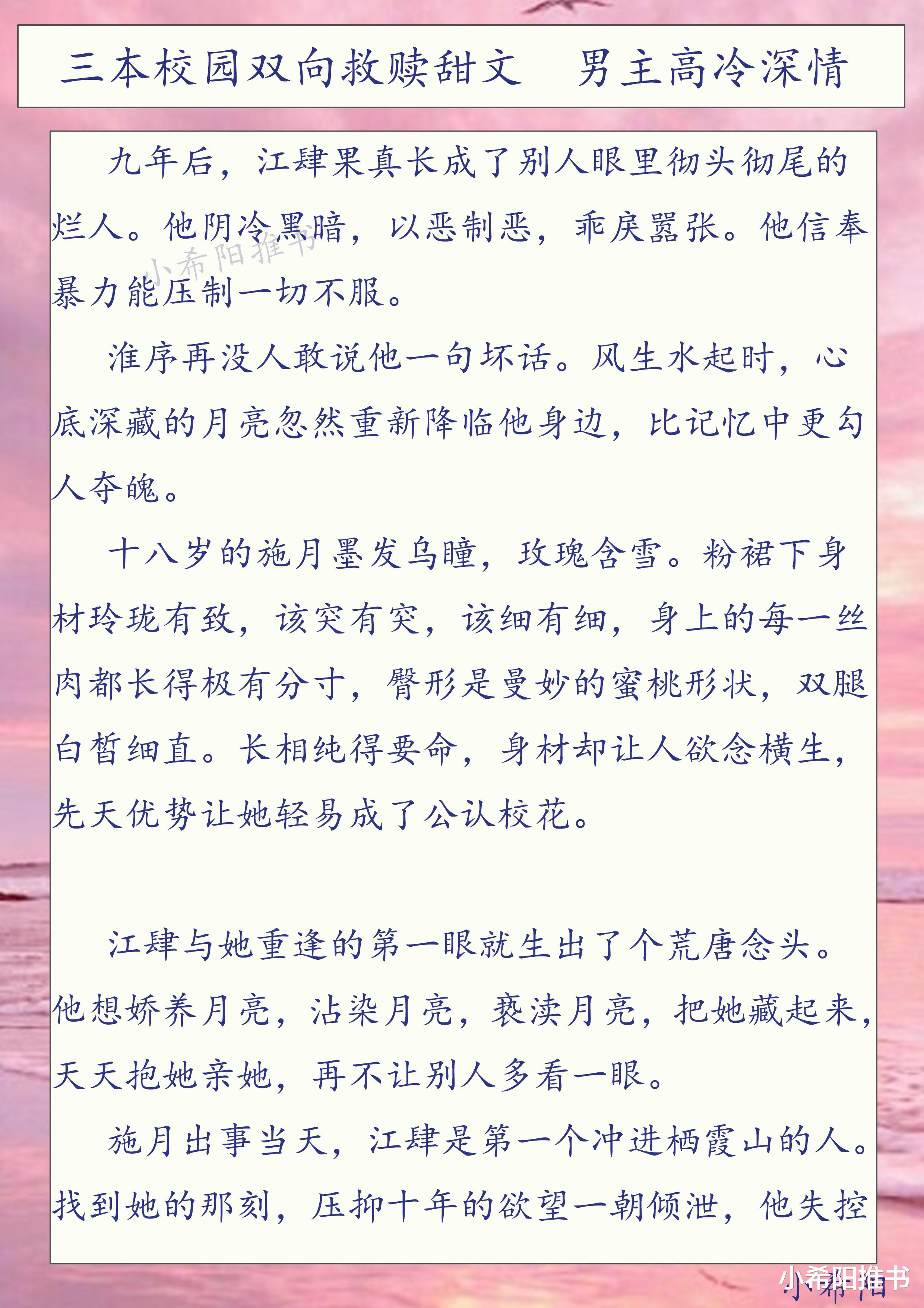 今天推荐三本校园救赎甜文,这三本真的很好看,男女主互相救赎彼此一起成长努力。男主都是外表冷淡,眼里只容下一人,那个照亮了他深陷黑暗世界的女孩。