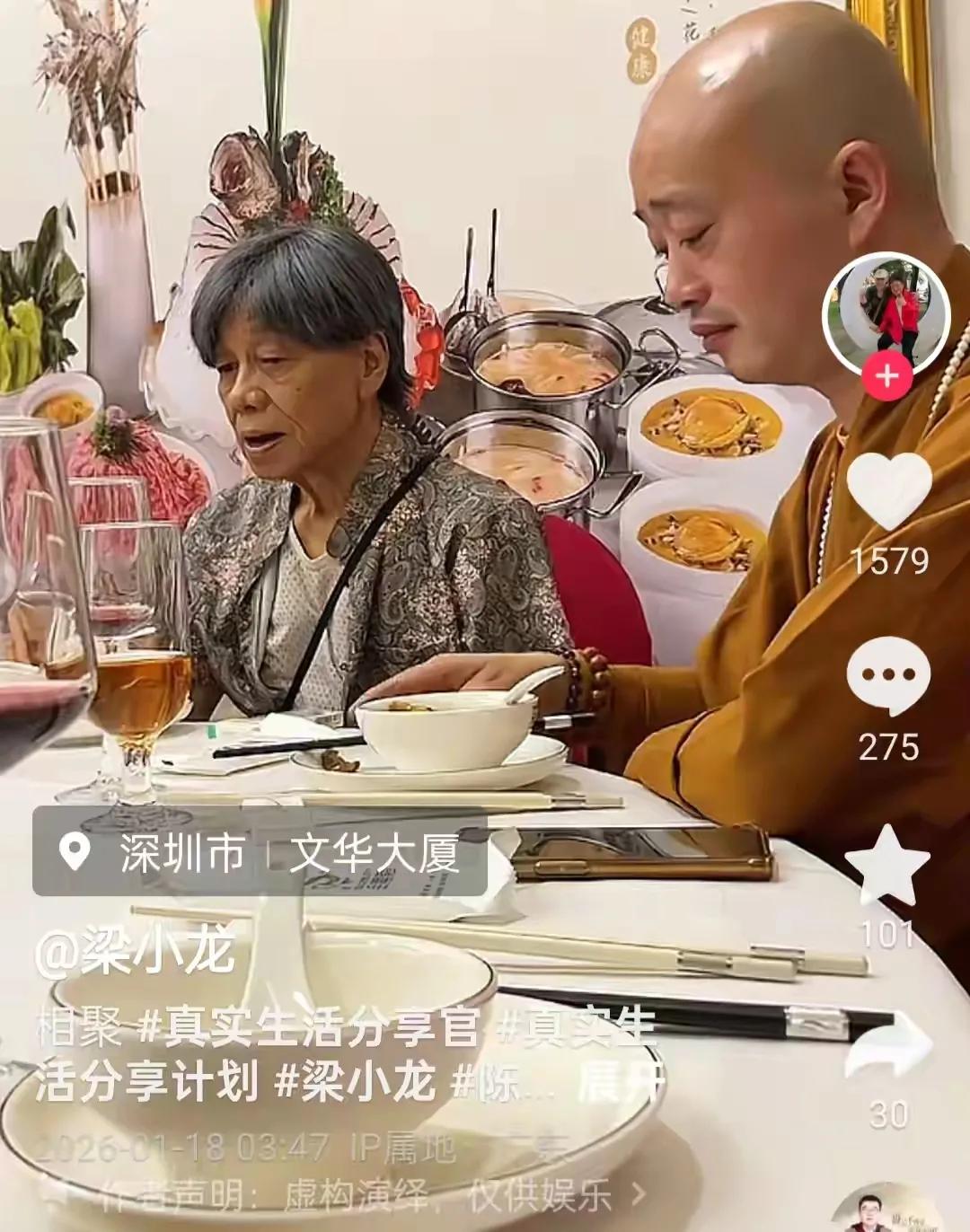 还有一个与面色油光可鉴的和尚同框的视频,在对方的衬照之下,梁小龙面无血色、嘴唇发紫的情况特别明显,而嘴唇的颜色,向来被称作心脏状况的晴雨表。